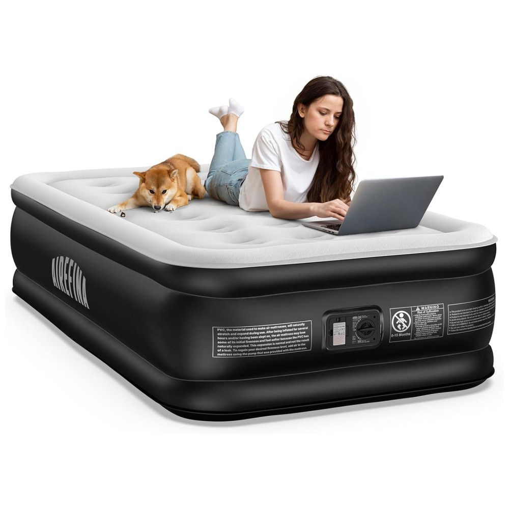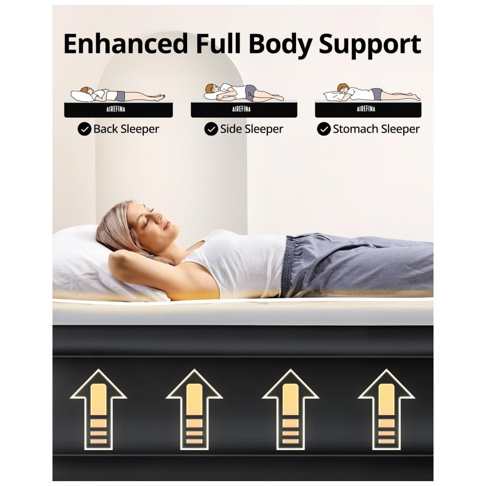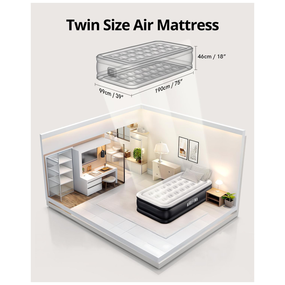 Colchão de Ar Twin Airefina 46cm com Bomba Embutida Conforto Premium Autoinflável em 2 Minutos Suporta 295kg Bolsa de Transporte