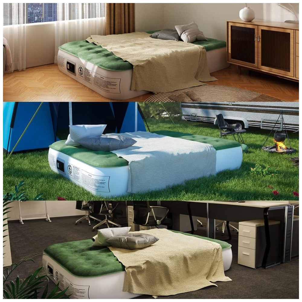 MAIS PRÁTICO Nosso colchão de ar à prova dágua premium pode ser como colchão de chão em casa, como cama portátil em viagens ou até mesmo como colchão de acampamento ao ar livre.