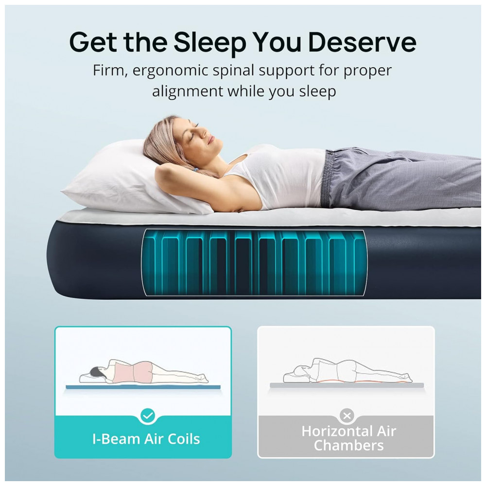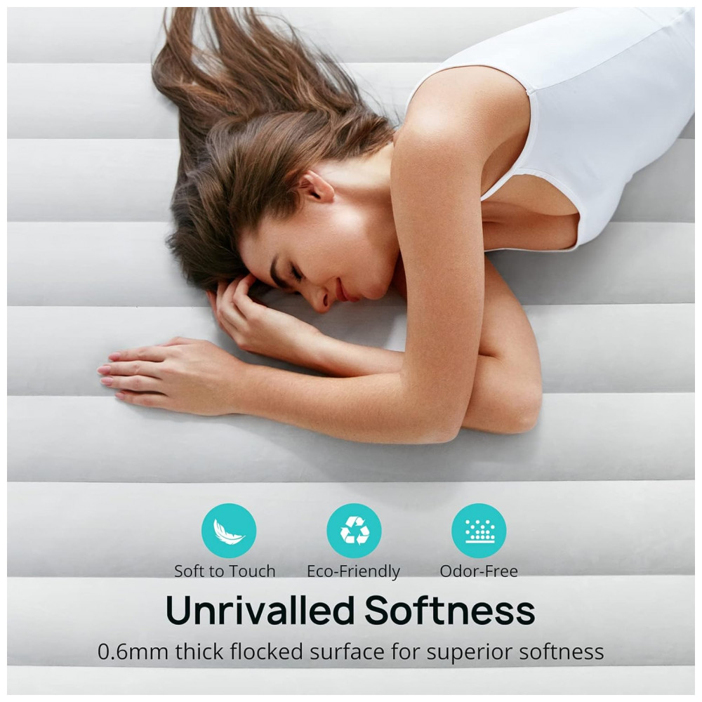 SOFT SAFE Com uma parte superior espessa e ultramacia premium, o colchão de ar inflável é incrivelmente macio para ajudá lo a dormir profundamente durante a noite.