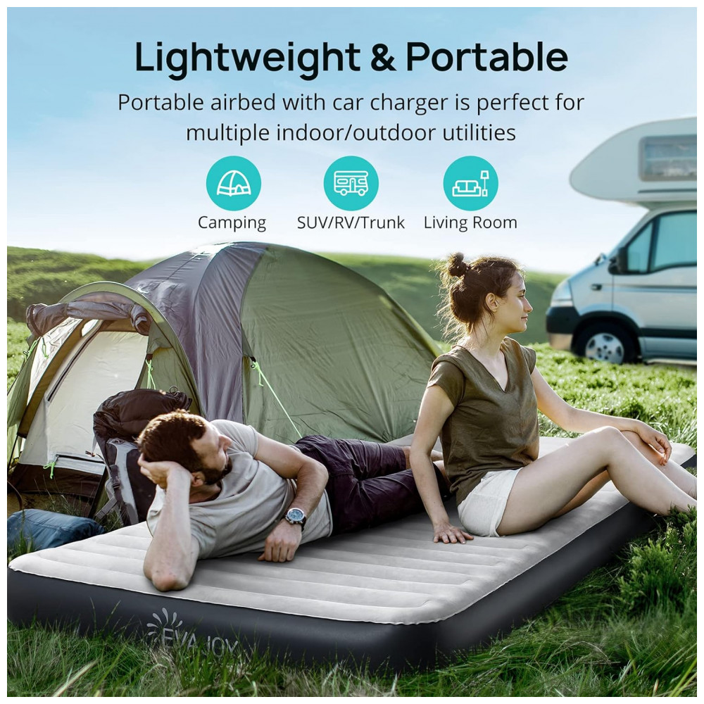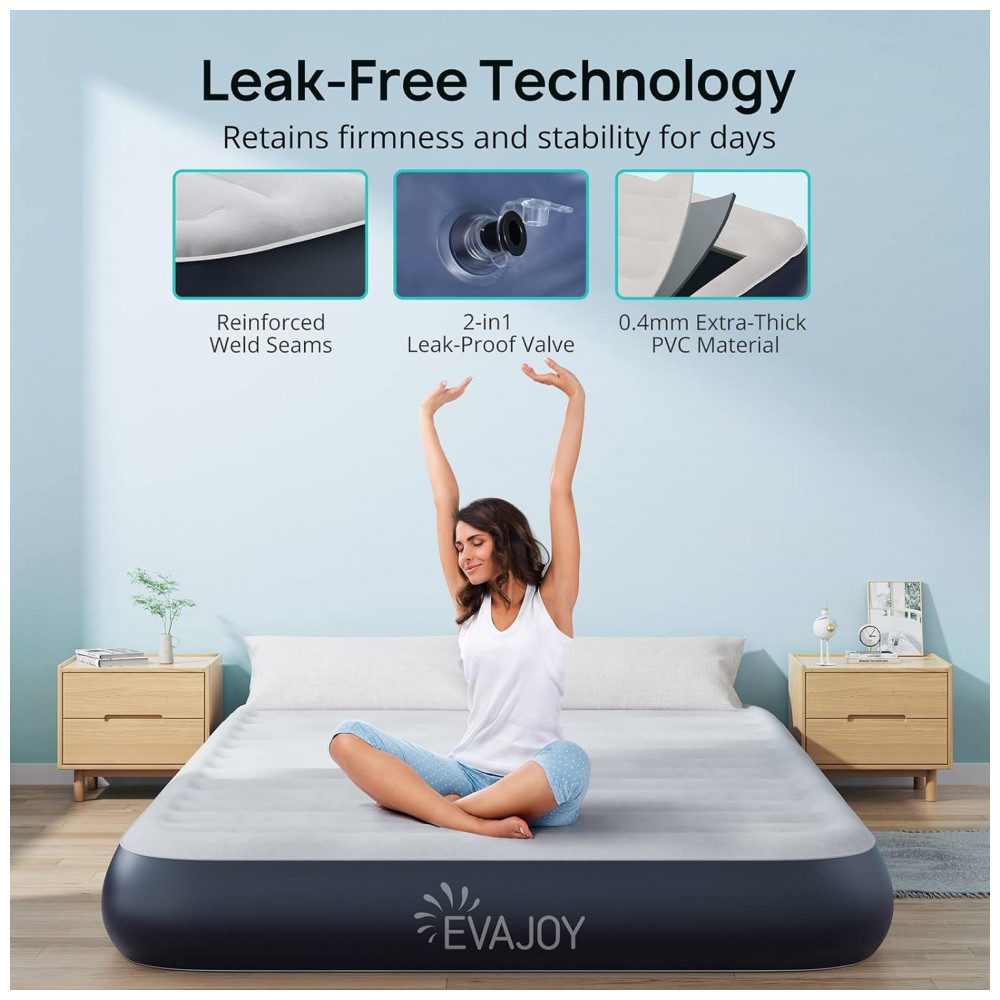 Colchão Inflável Casal com Bomba Embutida Para até 300KG Evajoy Cinza