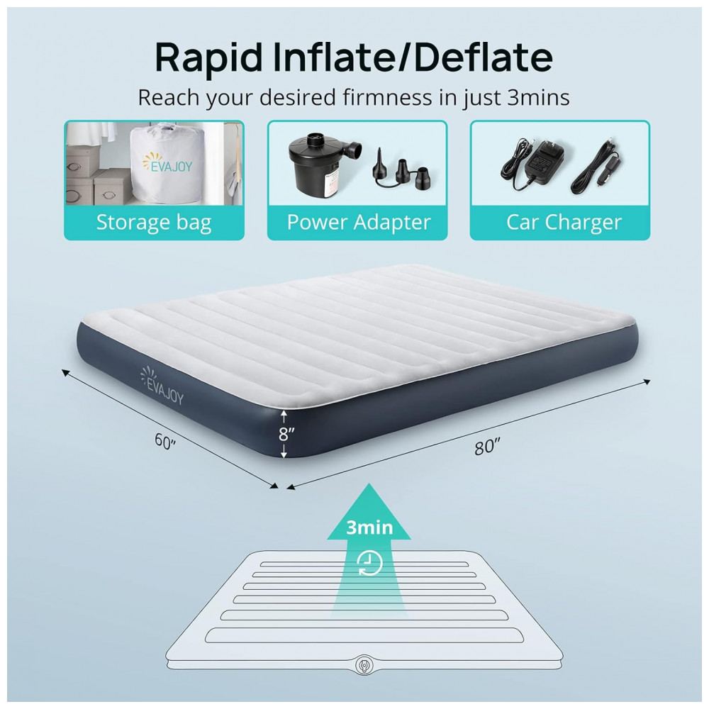 INFLAÇÃO DE 3 MINUTOS com uma bomba elétrica externa, adaptador de energia e carregador de carro, você só precisa de 3 minutos para encher o colchão inflável, para que possa ir direto para a diversão no acampamento.