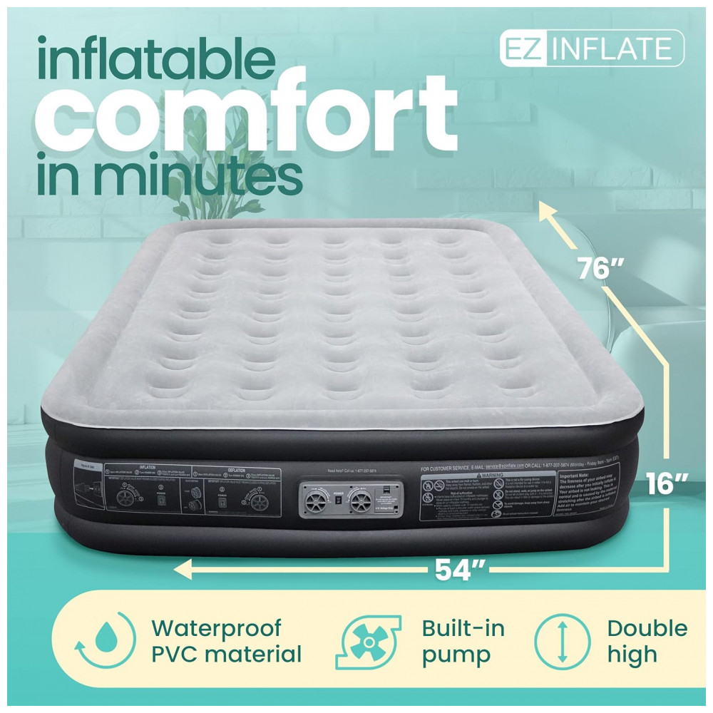 Colchão Inflável Casal com Bomba Embutida Para até 300KG EZ INFLATE Preto