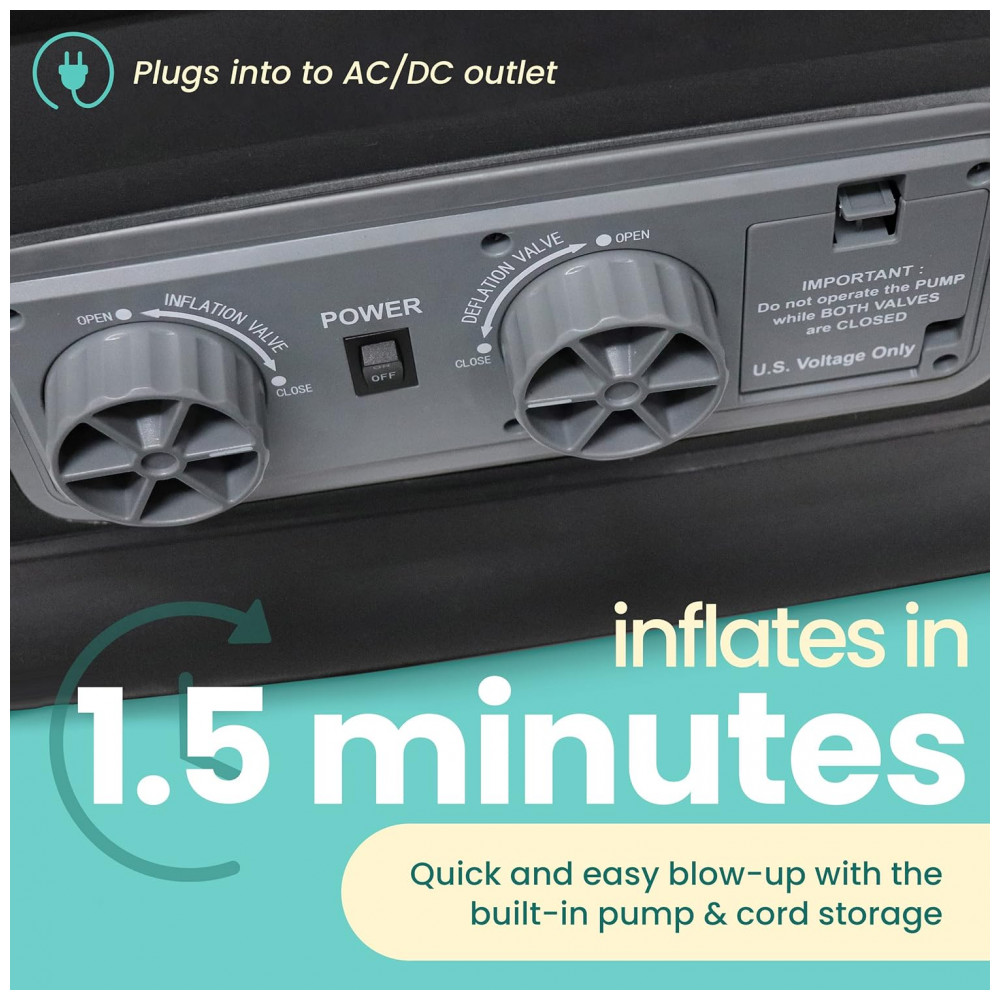 INFLAÇÃO RÁPIDA Veja como nosso colchão de ar de luxo com bomba embutida infla em 2 minutos ou menos Esteja você acampando ou tendo uma festa do pijama, esta cama inflável fará você cochilar em segundos.