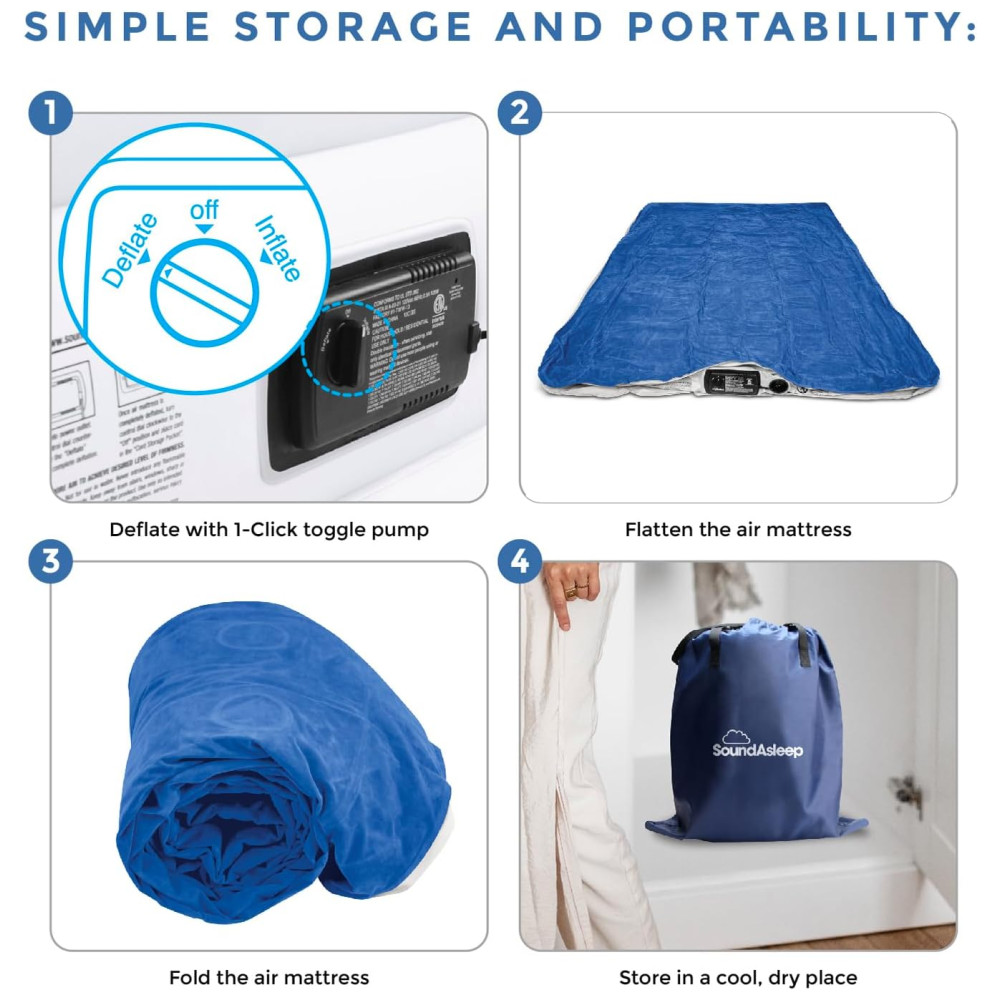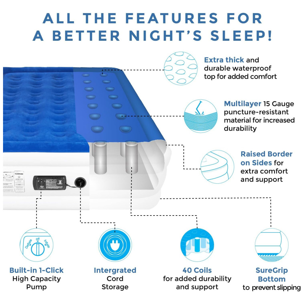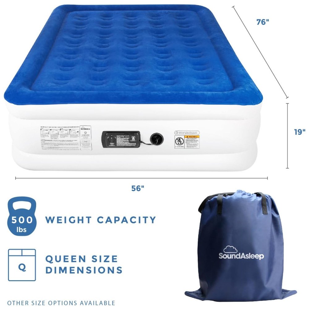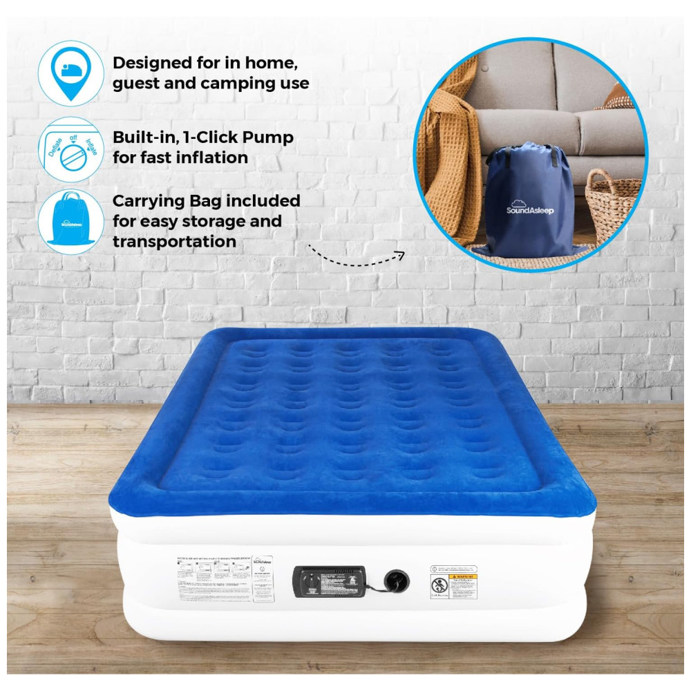 Colchão Inflável Casal com tecnologia ComfortCoil e bomba de ar incluída 110v SOUNDASLEEP PRODUCTS Azul