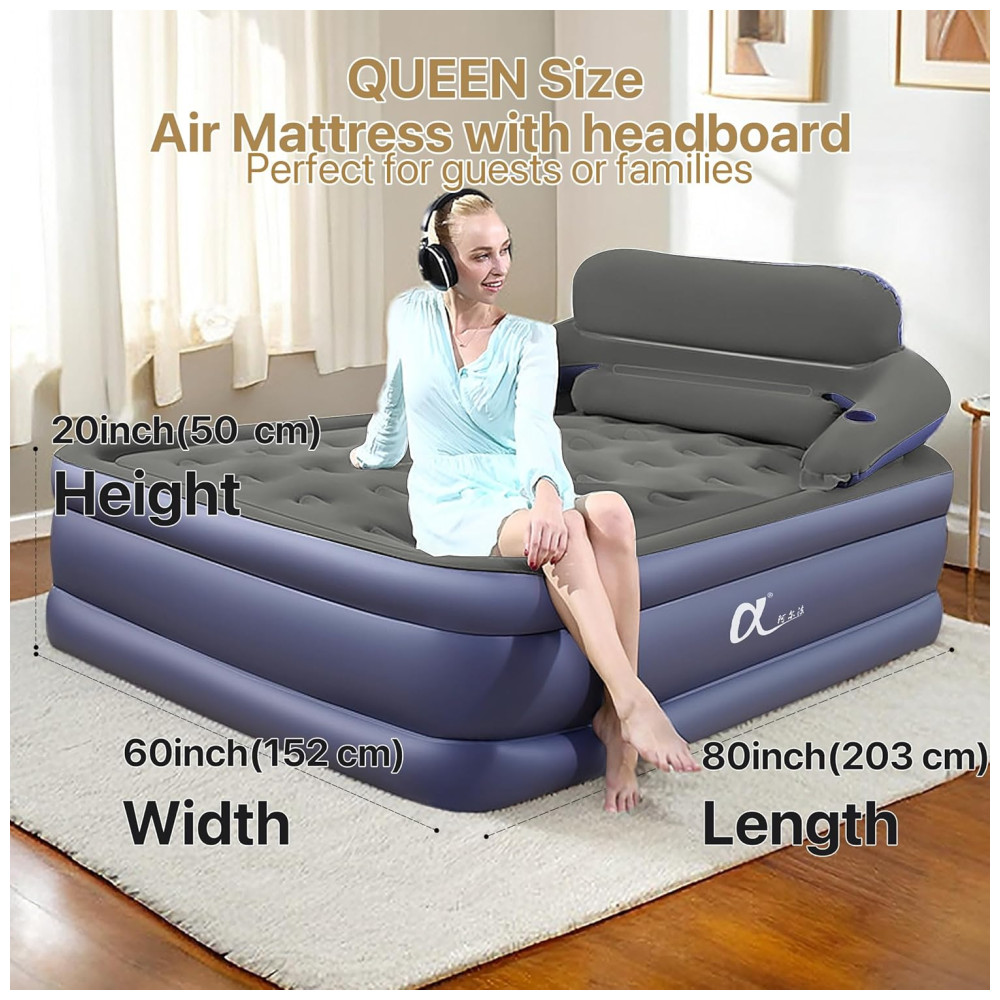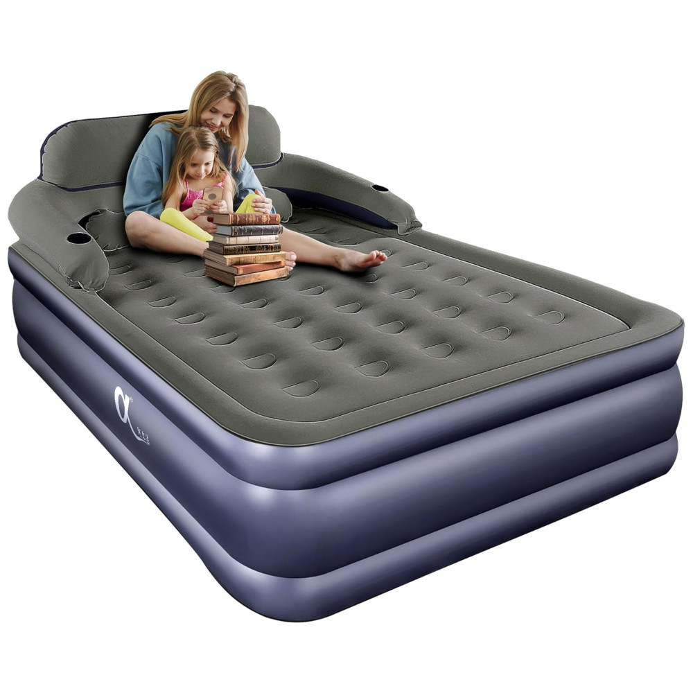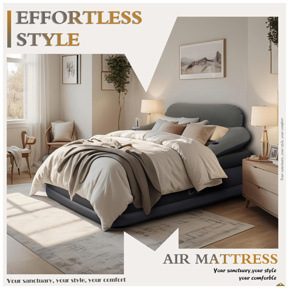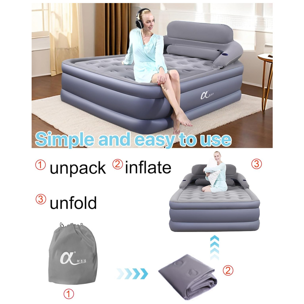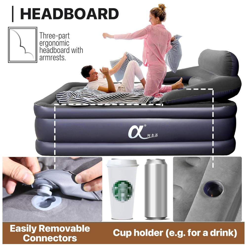 Colchão Inflável Casal Queen com Bomba Embutida e Encosto Para até 315KG AERFA Cinza