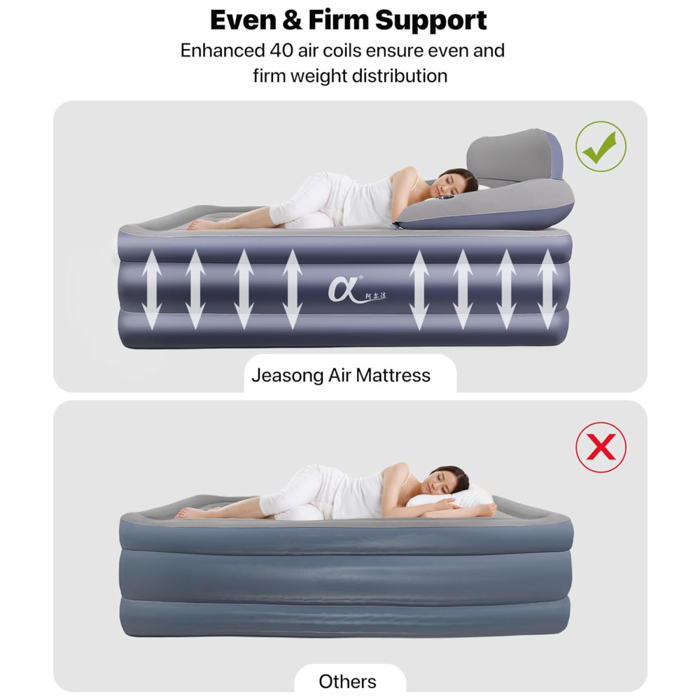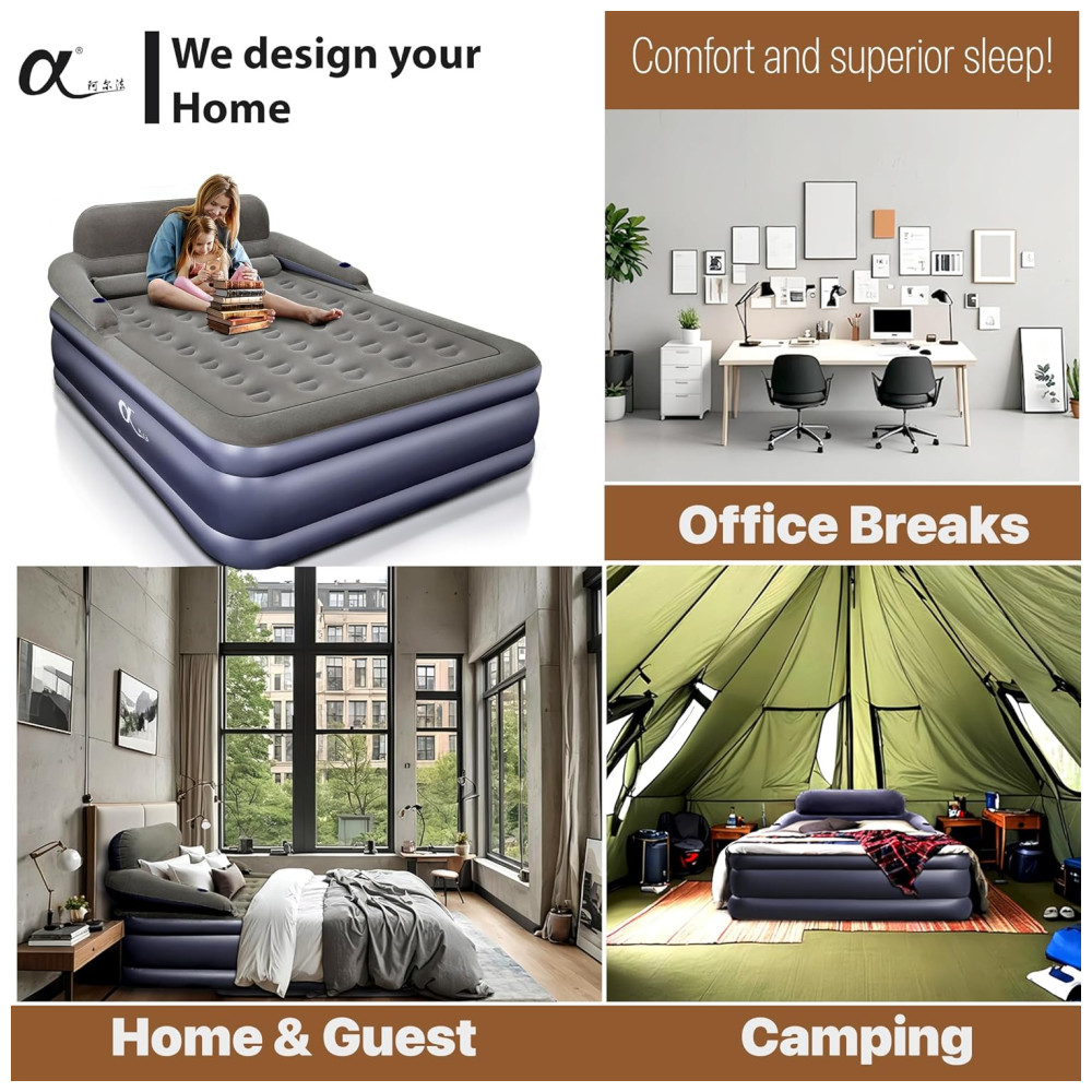 COMPANHEIRO DE SONO PROFUNDO Colchão de ar com uma nova geração de design de estrutura de tensão de barril, pressão do colchão distribuída uniformemente, suporte mais estável, processo de flocagem suave, para que você possa desfrutar de uma noite de sono relaxada e confortável, o peso máximo permitido 315 kg.