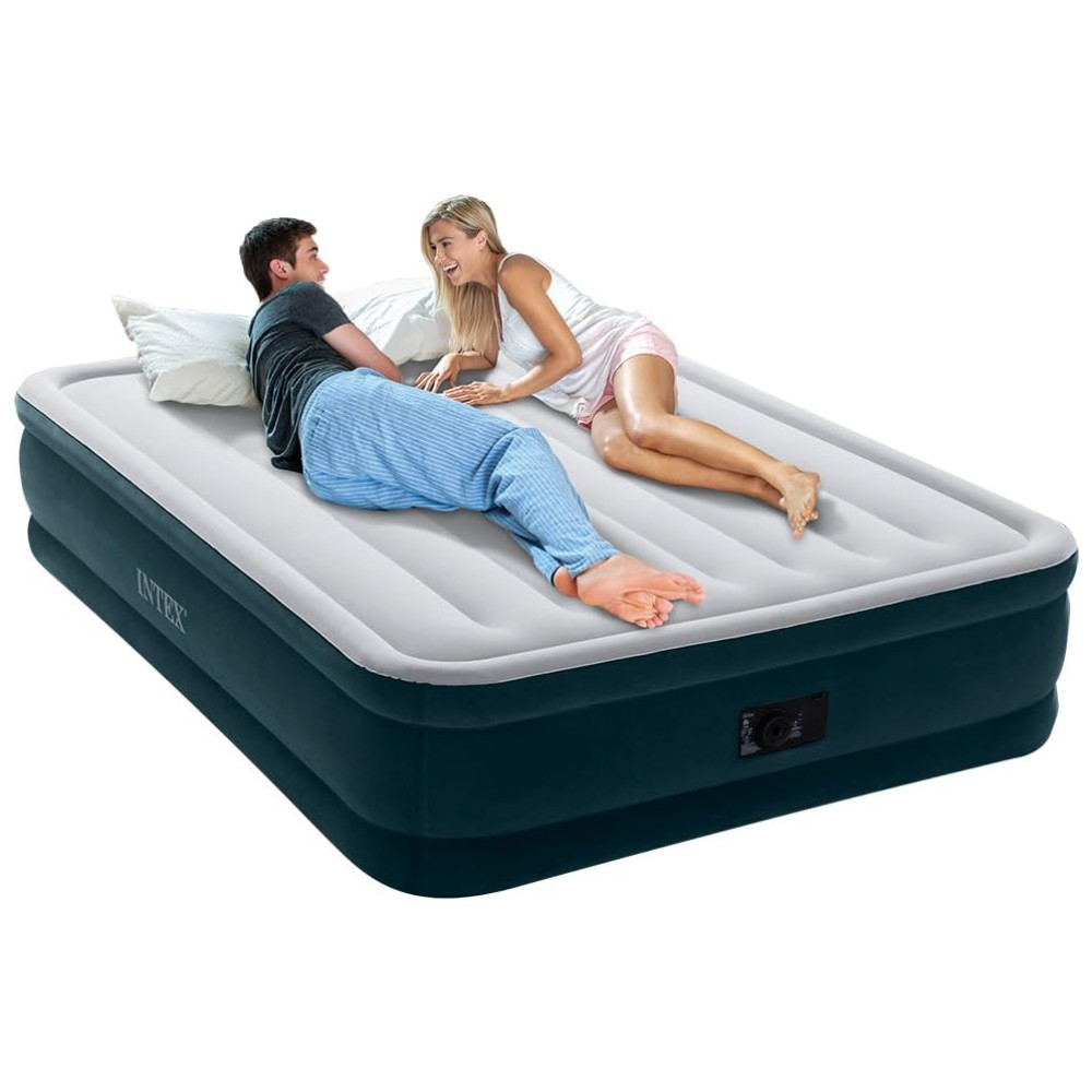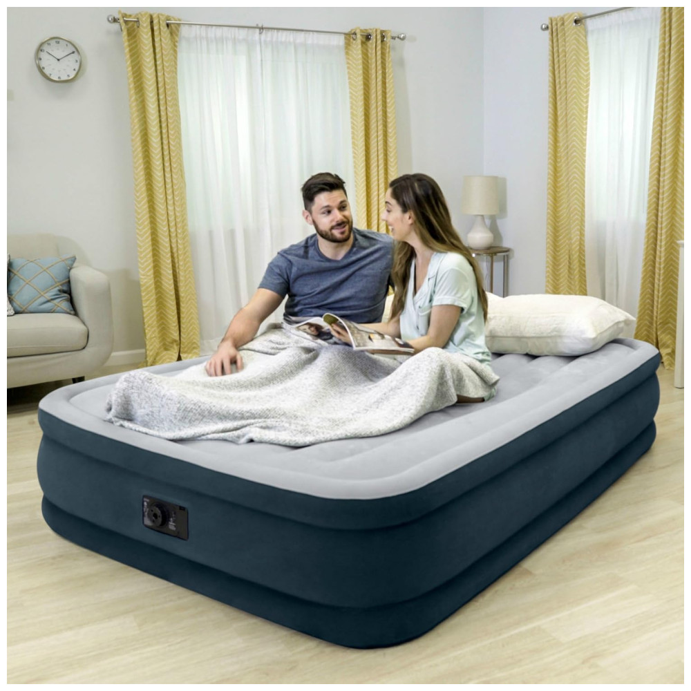 O e exclusivo colchão de ar da Intex oferece tudo o que você precisa para um hóspede noturno ou uma viagem para fora da cidade. Com uma luxuosa parte superior e laterais FLOCKED, uma bomba elétrica embutida super conveniente e uma construção de tecnologia de fibra patenteada pela Intex, o colchão de ar com conforto elevado é essencial para qualquer família. Você provavelmente nem precisará comprar novas folhas o tamanho padrão da rainha significa que você pode usar as folhas ajustadas que você já possui. Além disso, a altura da cama de 40cm pode facilitar a acordar de manhã