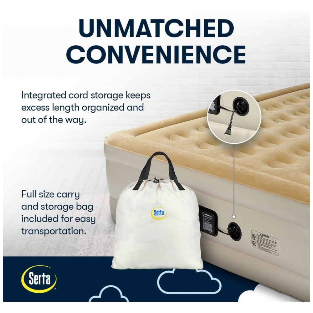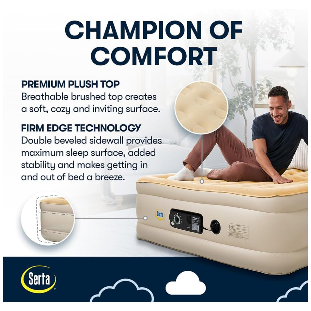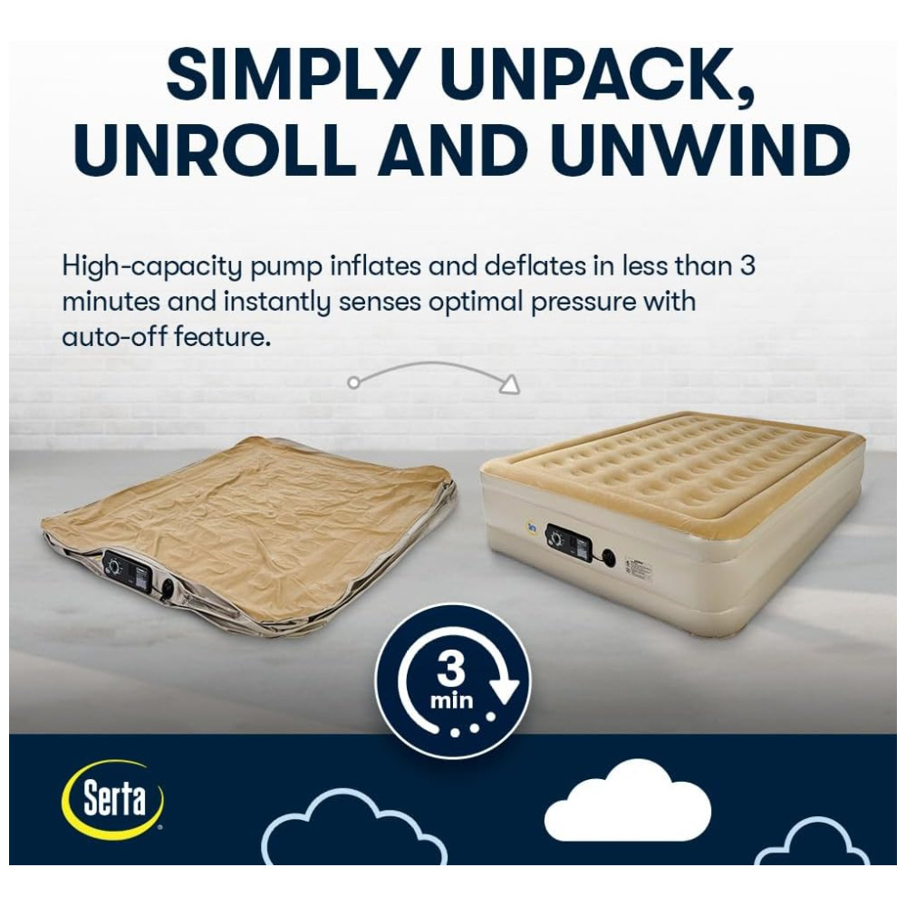 A bomba primária infla e desinfla automaticamente o colchão de ar em menos de 4 minutos, a bomba secundária neverFLAT monitora e mantém silenciosamente a pressão do ar no nível de conforto desejado enquanto você dorme O conveniente recurso de desligamento automático na bomba primária desliga automaticamente o sistema da bomba quando o colchão de ar é totalmente inflado ou desinflado Tampa superior do travesseiro lavável, 35 bobinas circulares criam uma superfície de sono nivelada e de suporte, materiais de qualidade que são perfurados e resistentes à água para garantir uma vida útil longa O topo durável fornece uma superfície de sono suave e confortável que também mantém seus lençóis no lugar, fabricado com materiais de qualidade que são perfurados e resistentes à água para garantir uma vida útil longa 46cm de altura elevada tornam mais fácil entrar e sair da cama Bolsa de transporte incluída para zenamento e viagem convenientes, Queen. Capacidade de peso 227kg.