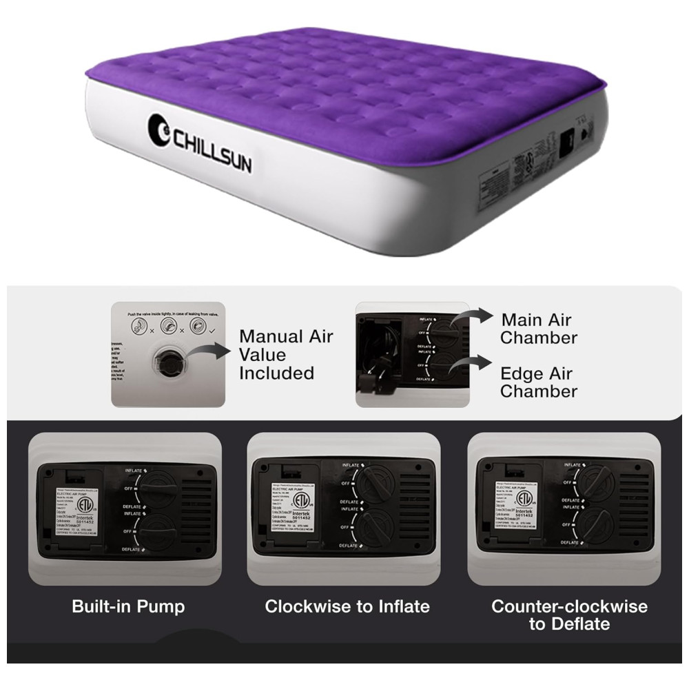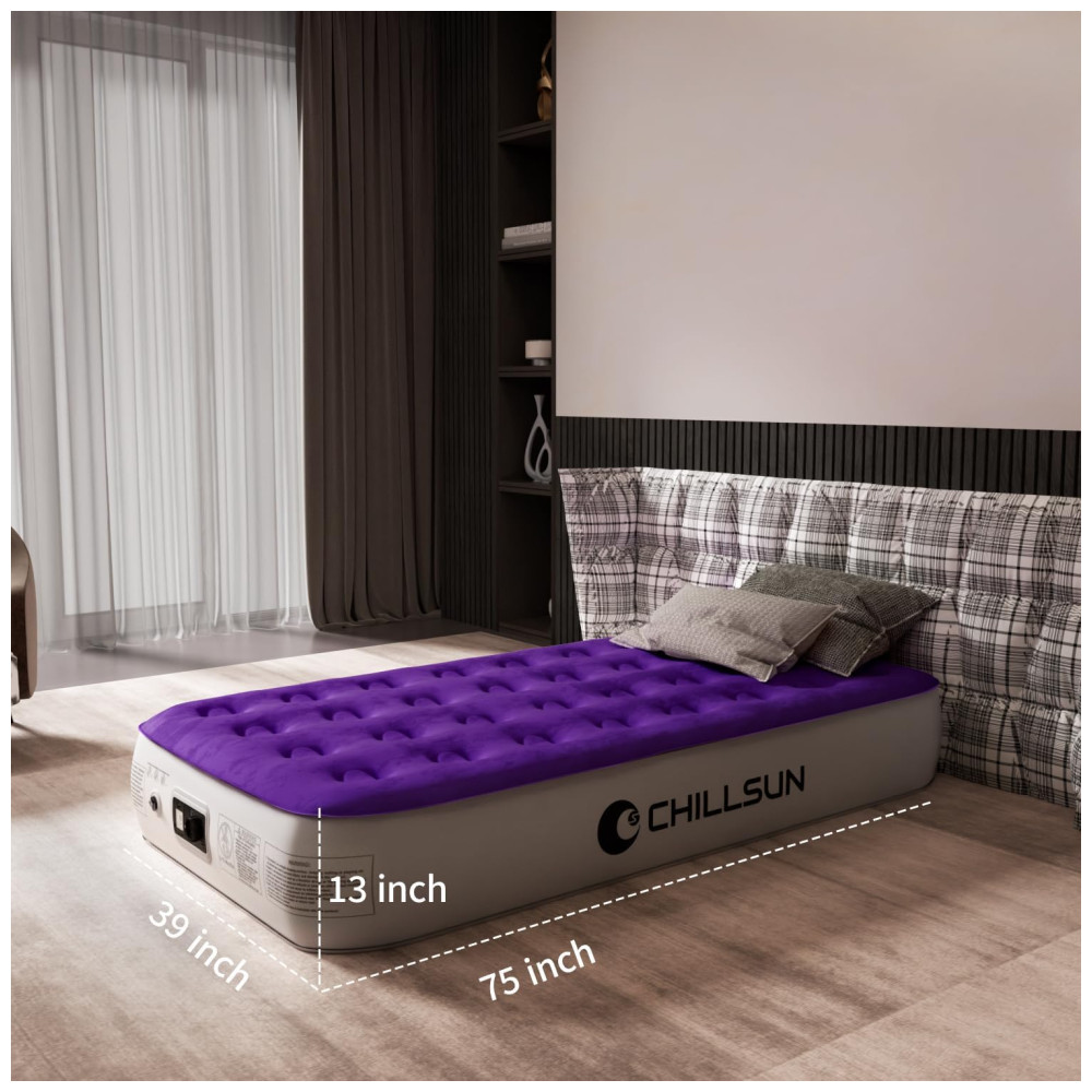 Colchão Inflável Solteiro com Bomba Embutida Para até 250KG CHILLSUN Roxo