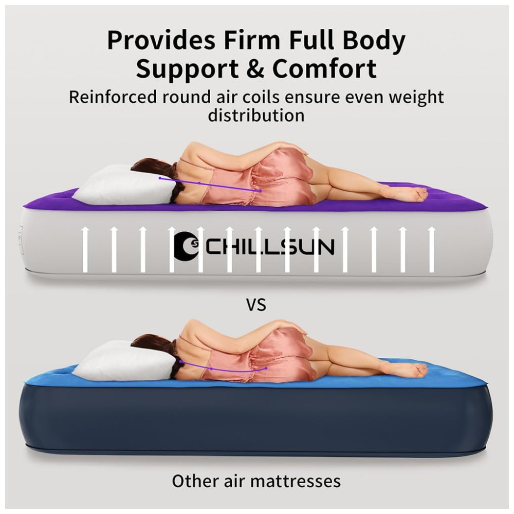 Obtenha o colchão de ar CHILLSUN com confiança Se você tiver algum problema com o colchão de ar CHILLSUN, entre em contato conosco diretamente e resolveremos imediatamente. Esperamos que você aproveite sua jornada de compra e traga comodidade para sua vida por meio de nossos produtos. Não hesite, reserve hoje e desfrute de uma viagem sem preocupações