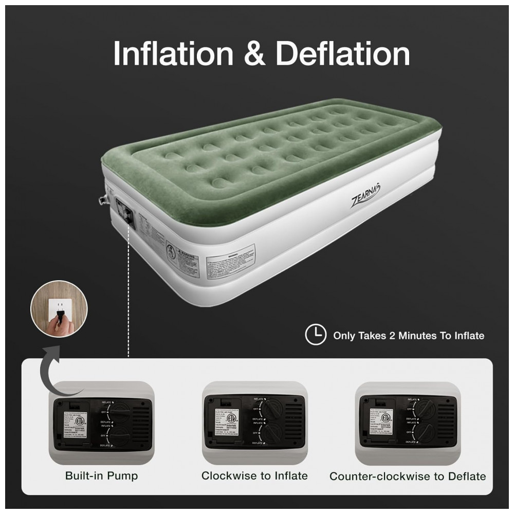 Colchão Inflável Solteiro com Bomba Embutida Para até 300KG Zearna Verde