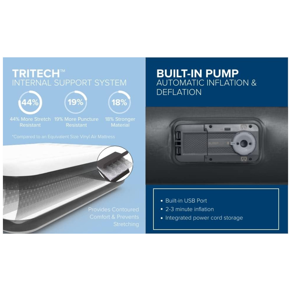 CONSTRUÇÃO SUPERIOR Os colchões de ar Tritech promovem posturas de sono saudáveis. Um núcleo de malha densa de poliéster é colocado entre duas camadas duráveis de PVC, proporcionando o próximo nível de apoio para as costas e ombros.