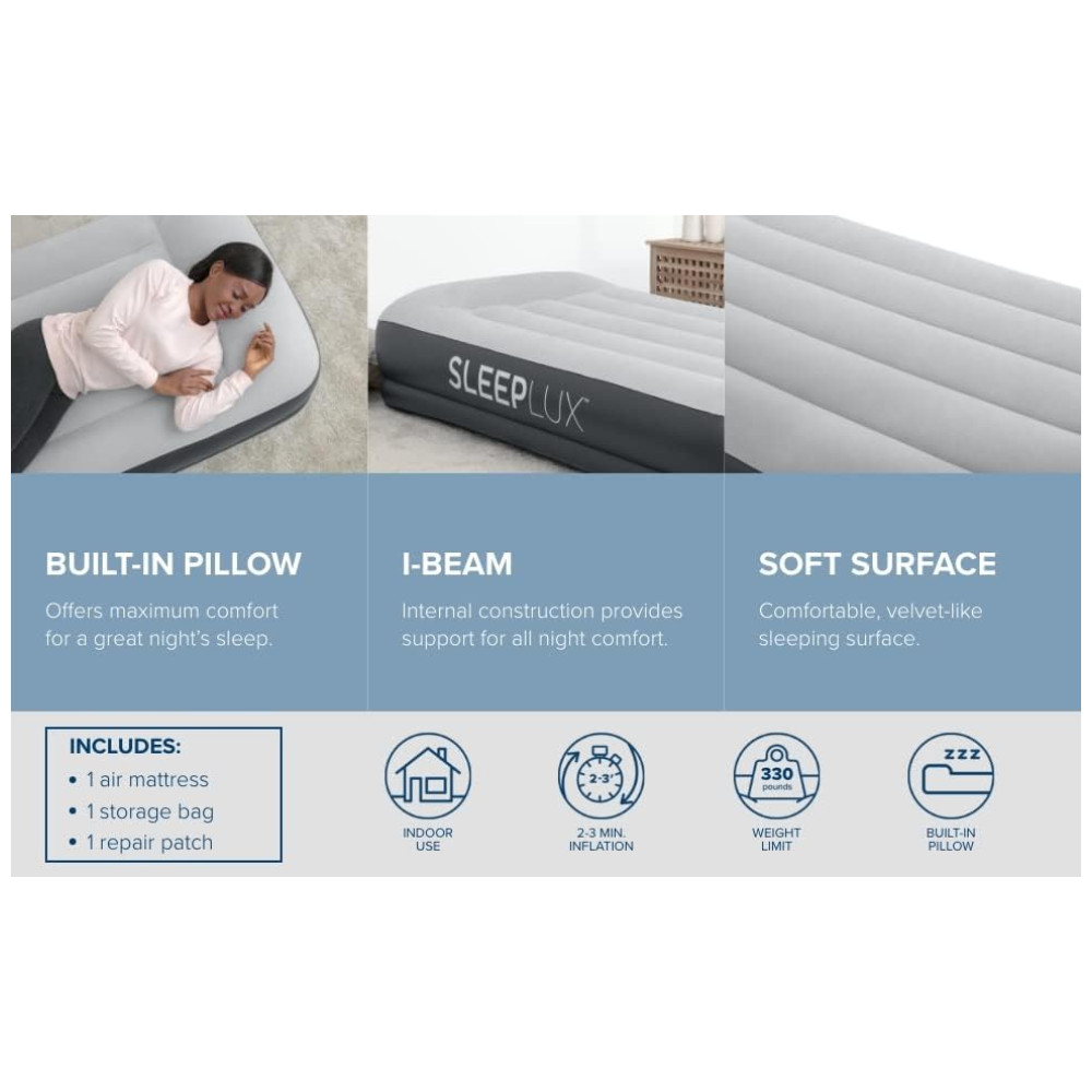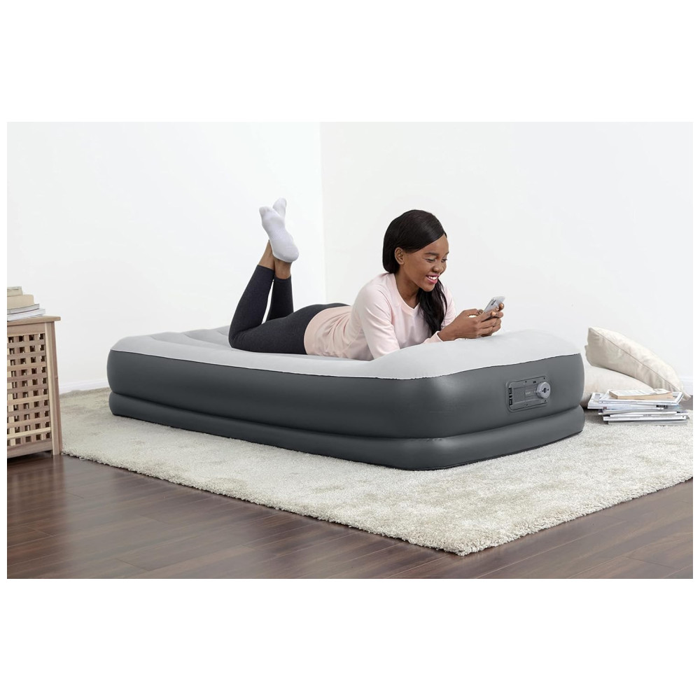 Colchão Inflável Solteiro com travesseiro e bomba de ar embutida com entrada USB 110v SLEEPLUX 69092E Cinza