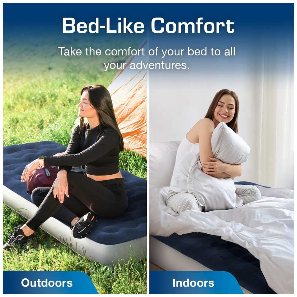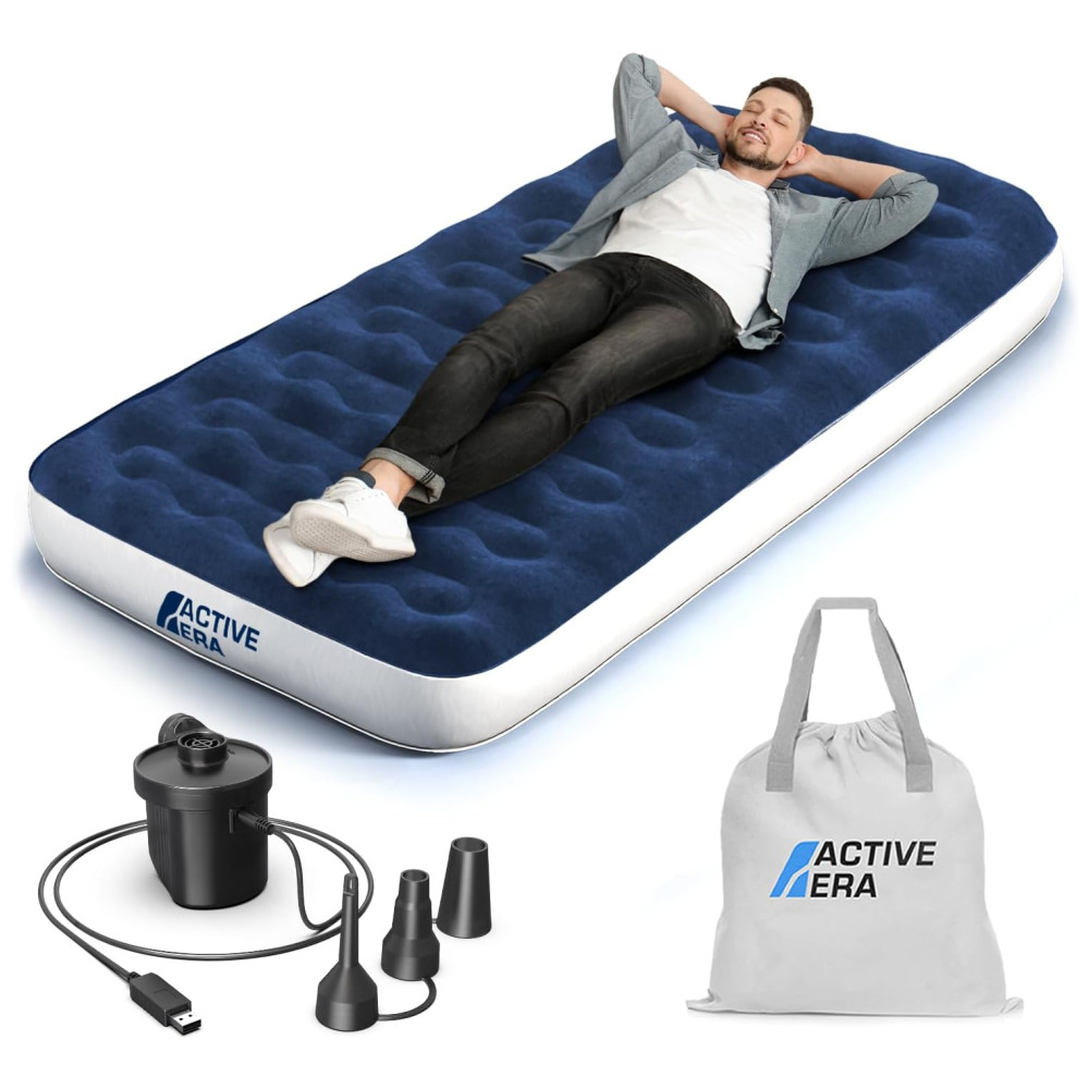 Colchão Inflável Solteiro de ar dublo com bomba recarregável USB e travesseiro integrado ACTIVE ERA Azul