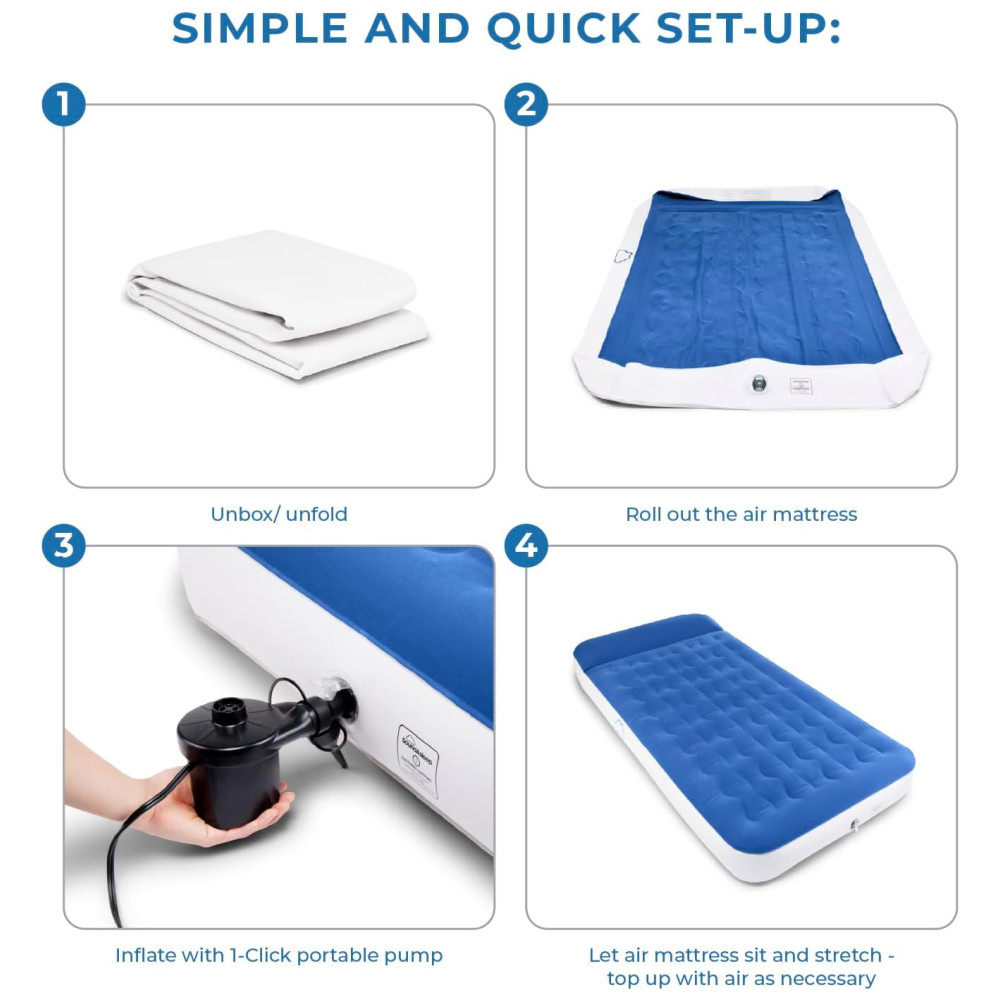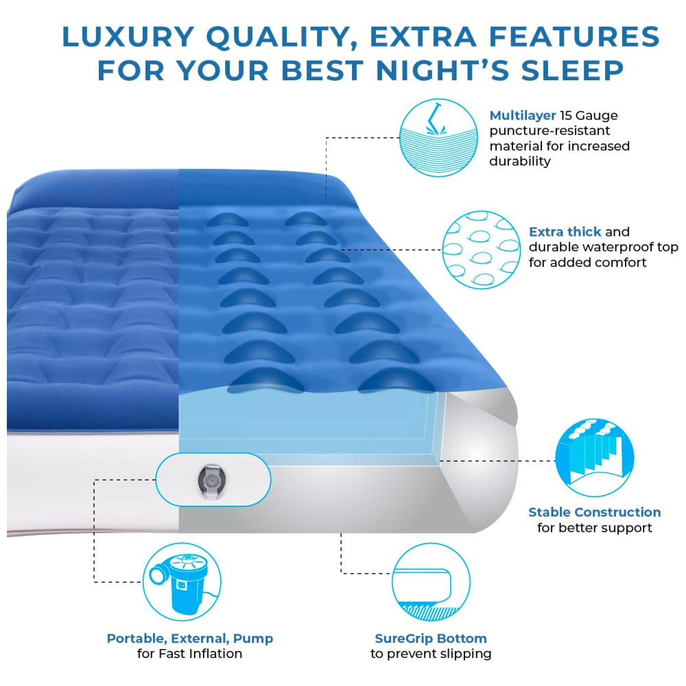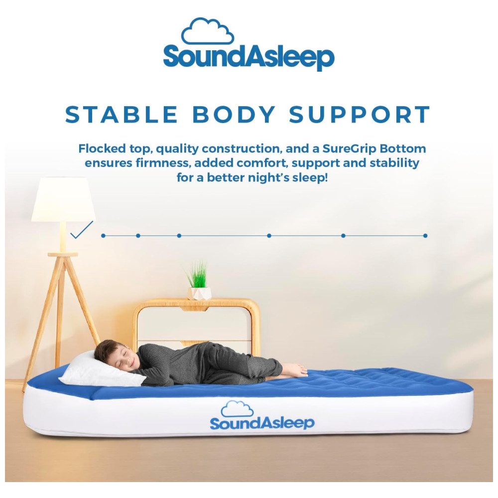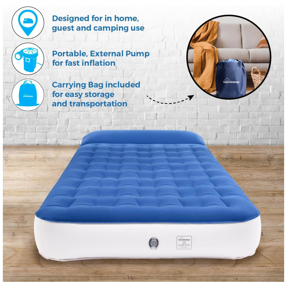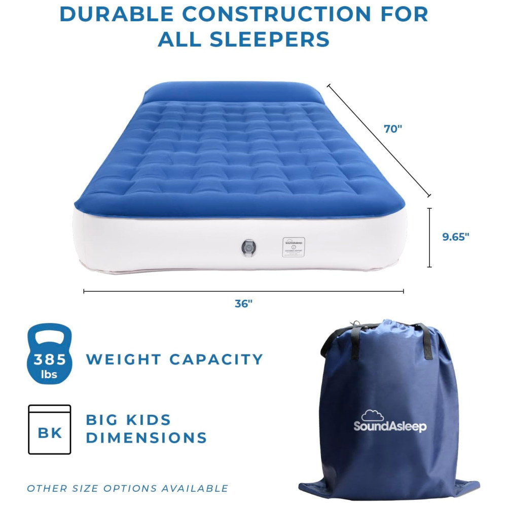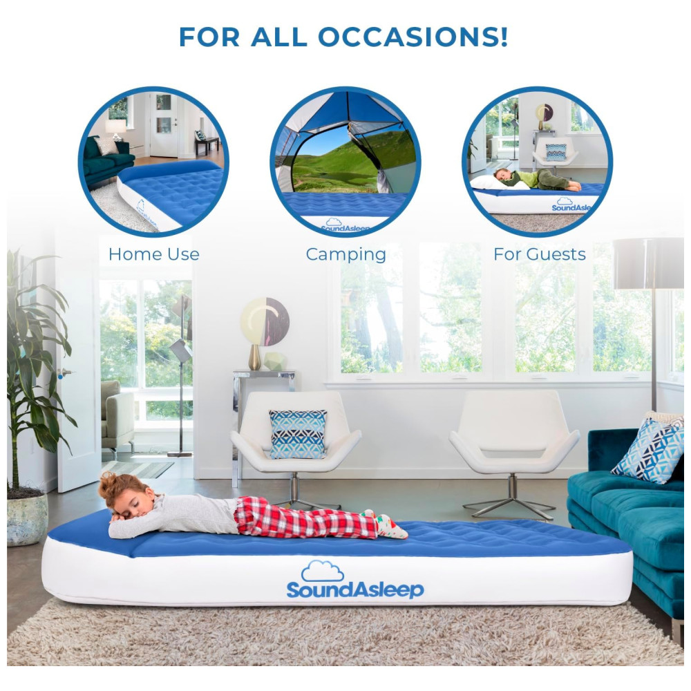 Colchão Inflável SoundAsleep Dream Series Big Kids com Bomba Externa de Alta Velocidade Ideal para Crianças Grandes em Casa e Acampamento – Azul