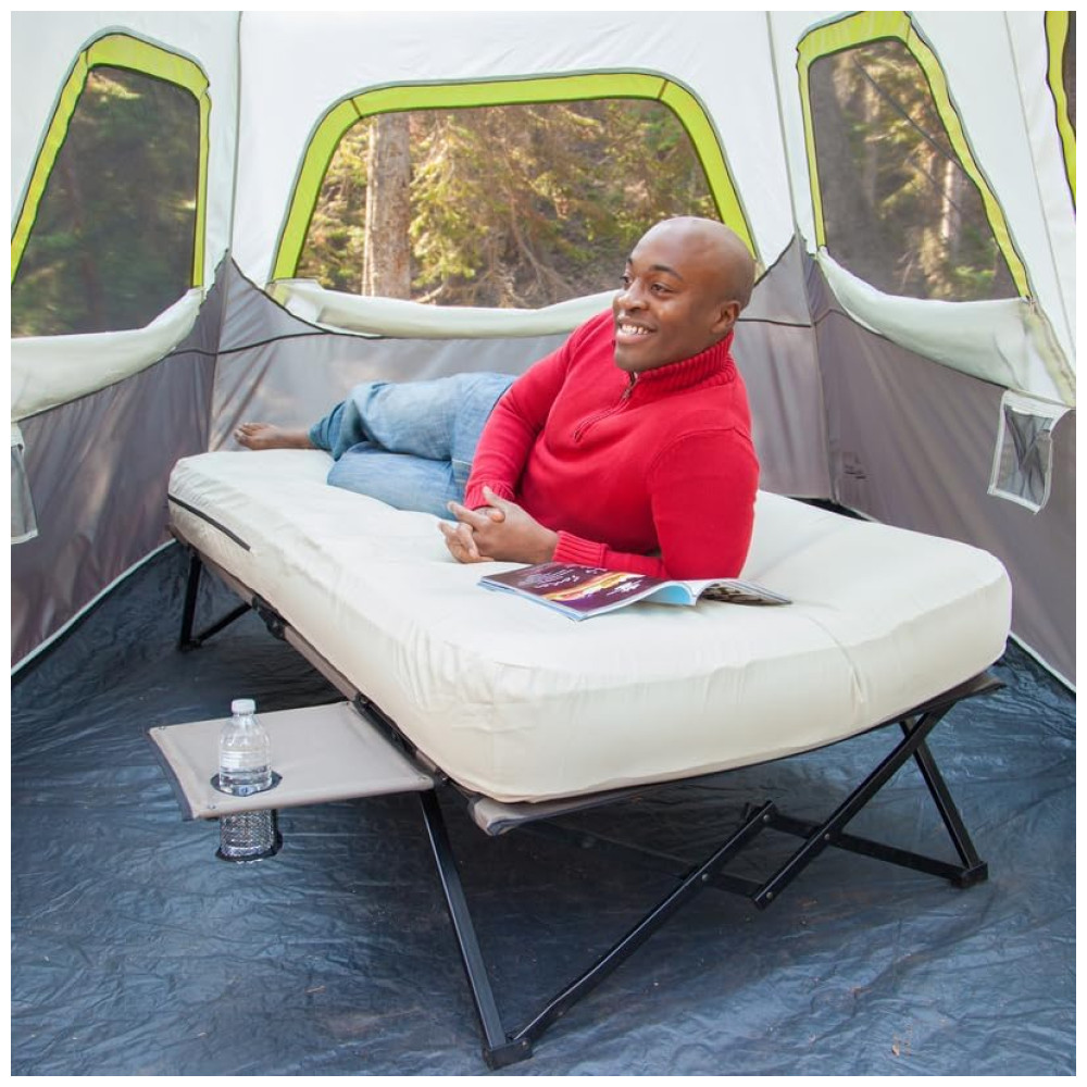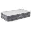 Colchão e berço de ar twin portáteis, ideais para camping e convidados Recursos do colchão Sistema de bobina ComfortStrong para suporte e conforto O sistema AirTight com válvula de trava dupla evita que o colchão vaze O berço de aço resistente suporta até 136kg e pode acomodar a maioria das pessoas até 15cm altura Inclui uma bomba operada por bateria 4D baterias vendidas separadamente A válvula Double Lock é vedada duas vezes para evitar vazamentos, a tampa costurada mantém o colchão de ar no lugar, estrutura de aço dobrável resistente