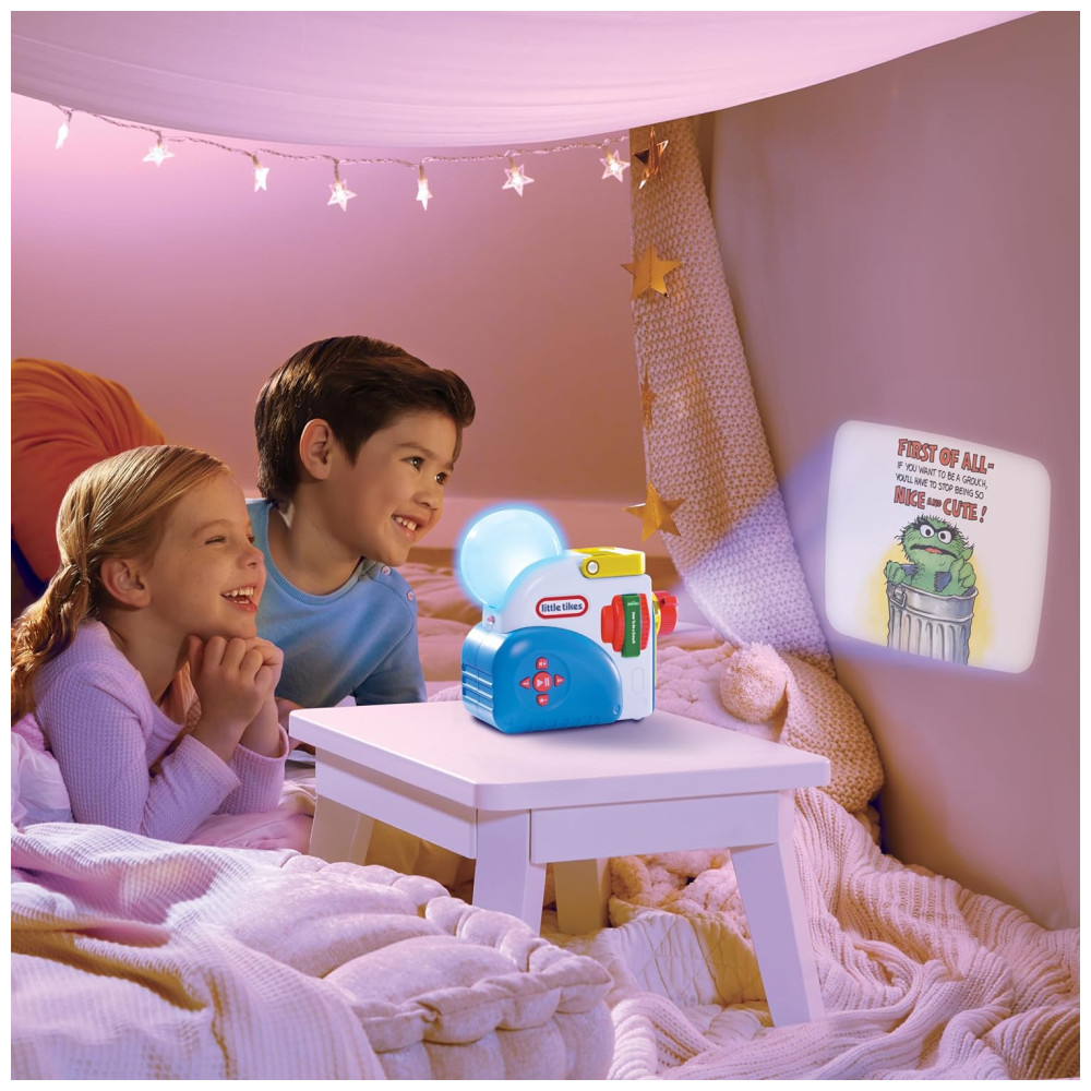 A coleção Vila Sésamo Oscar the Grouch Friends para Little Tikes Story Dream Machine é perfeita para meninos e meninas de 3 anos. Ela inclui três histórias da Vila Sésamo e um personagem de Oscar, o Grouch, que adiciona efeitos de luz no modo luz noturna.