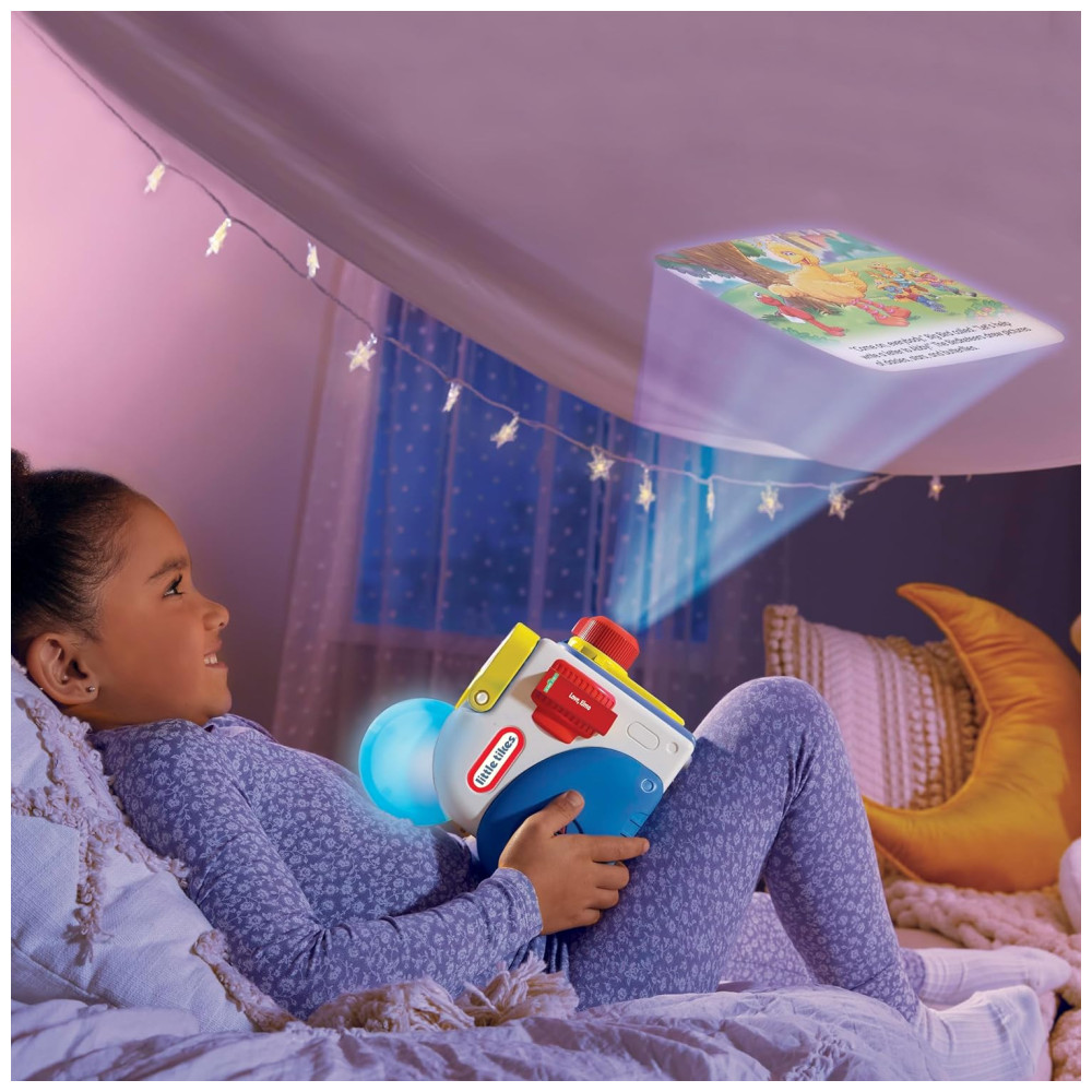 A Story Dream Machine é um excelente recurso para desenvolver habilidades iniciais de leitura, pois as crianças podem ver e ouvir palavras e ler junto com o narrador enquanto as palavras e imagens brilham na parede.
