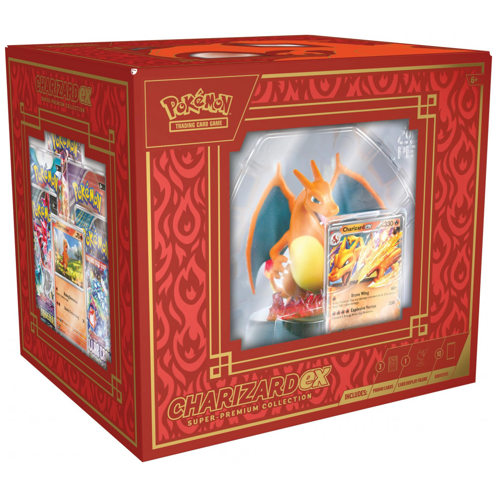 A coleção Pokémon TCG Charizard ex Super Premium é um conjunto temático voltado a jogadores e colecionadores que desejam reunir cartas exclusivas do universo de Charizard em um único produto. O kit combina cartas promocionais holográficas, miniatura expositora e diversos boosters, permitindo tanto a expansão de decks quanto a montagem de exibição estática com foco no personagem.