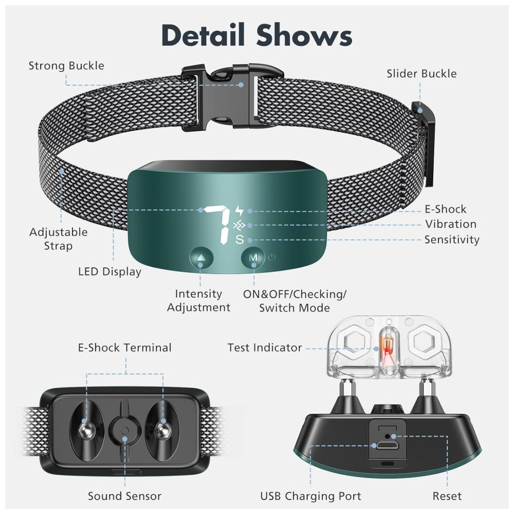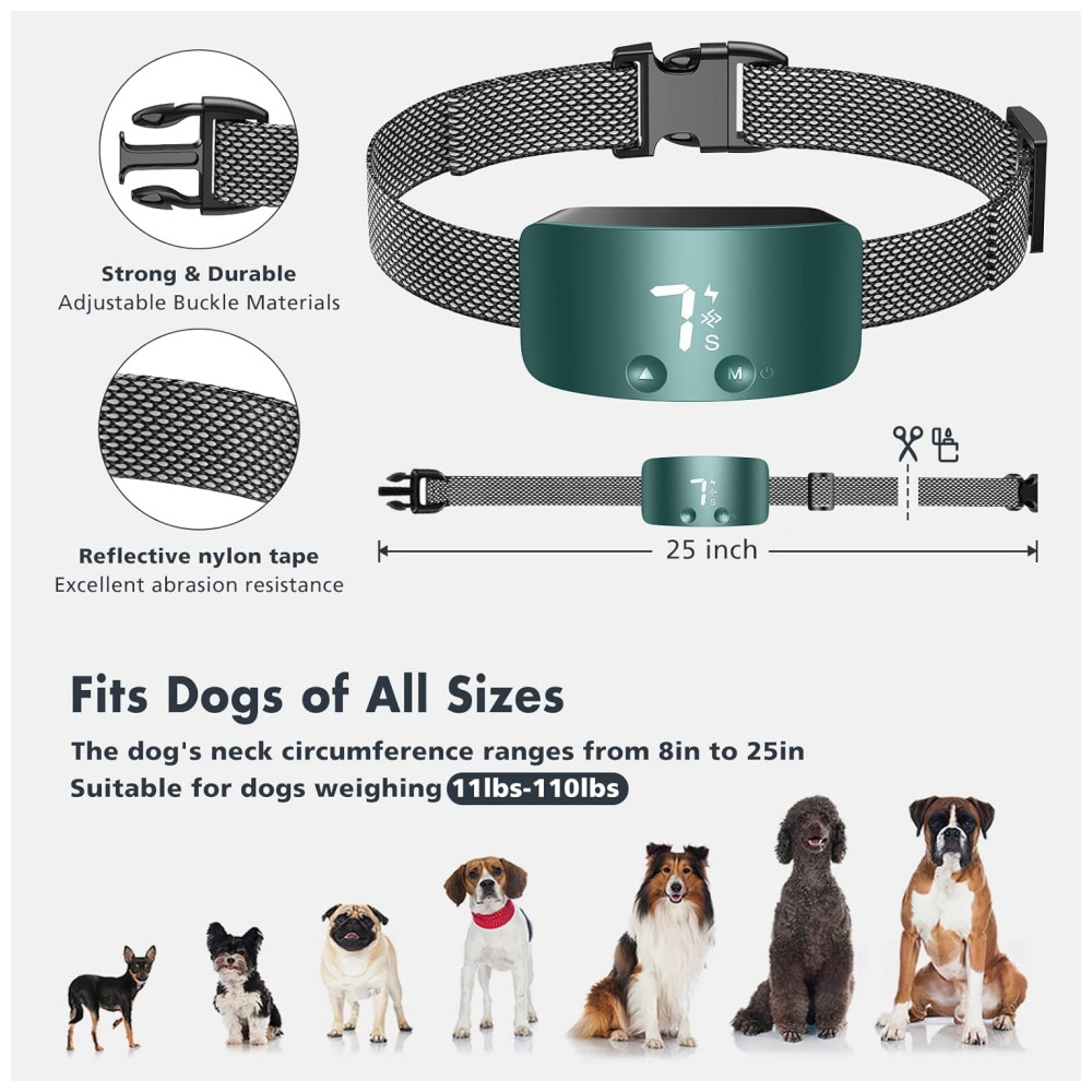 Coleira Anti Latido Recarregável com 7 Niveis Ajustáveis para Todos os Tamanhos NBJU Verde escuro
