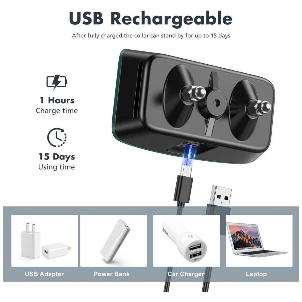 Coleira recarregável, carregada em apenas 30 minutos e funciona cerca de 12 dias