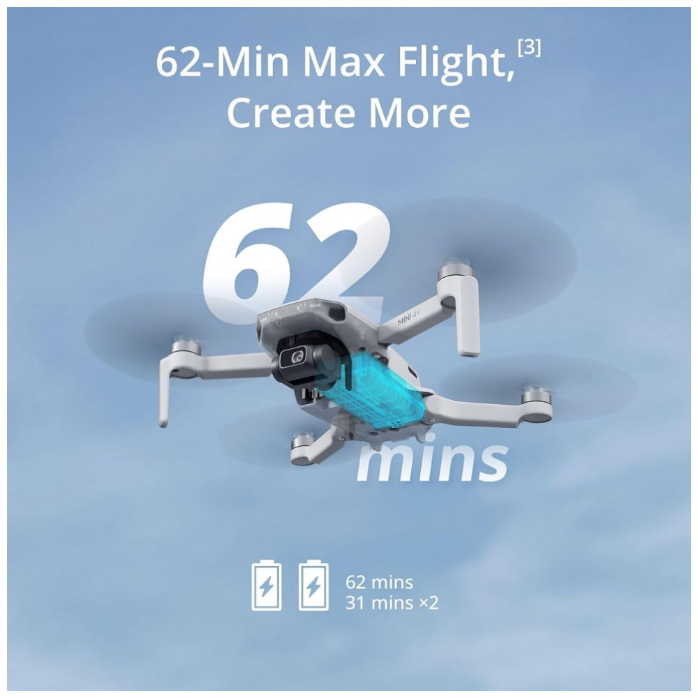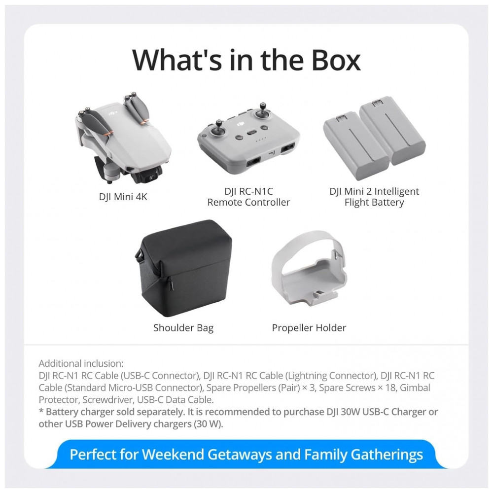 O Drone DJI Mini 4K é uma maneira incrível de capturar seu mundo aéreo em 4K. Com menos de 2 kg, dispensa testes na maioria das regiões. Fácil de usar, com tempo de voo máximo de 31 minutos, alcance de transmissão de 10 km, imagens 4K incríveis e muito mais. Capture momentos deslumbrantes em qualquer iluminação, voe com estabilidade até em ventos fortes de nível 5, transmita vídeos em HD por até 10 km e desfrute de bateria prolongada para criações sem interrupções. Este drone para adultos é fácil de operar, seguro para iniciantes e oferece QuickShots inteligentes para vídeos profissionais com um toque. Inclui drone Mini 4K, 2 baterias, controle remoto DJI RCN1C, bolsa tiracolo, suporte de hélices, hélices sobressalentes e muito mais.
