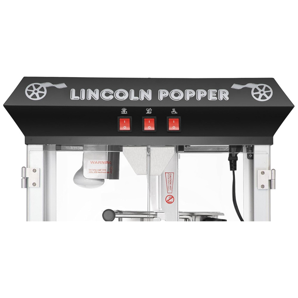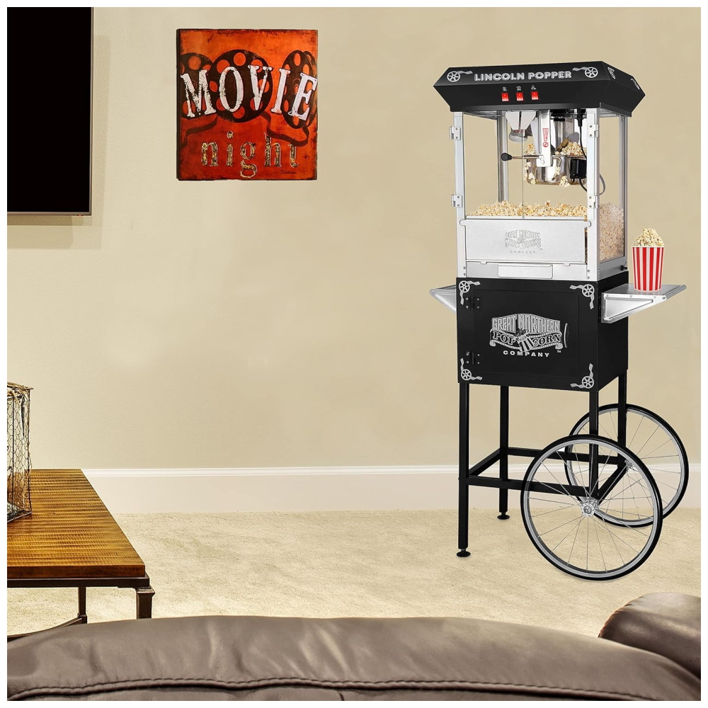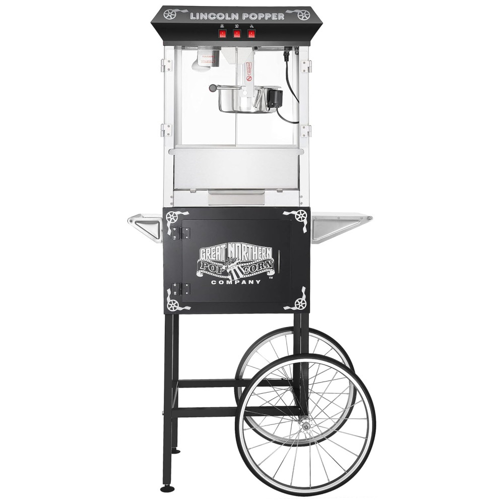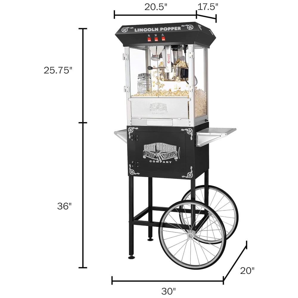 Componentes Incluídos Máquina de pipoca estilo antigo Great Northern Popcorn 6005 Lincoln Full Popper completa com carrinho e chaleira de 0,28 gramas