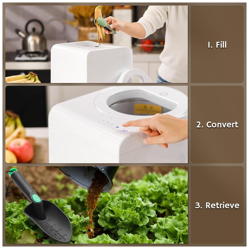 Transforme restos de comida e resíduos de cozinha em pó com nossa máquina de compostagem elétrica. Reduza o desperdício de alimentos em até 90% e obtenha um fertilizante nutritivo para suas plantas, ou diminua o volume e o odor do lixo.