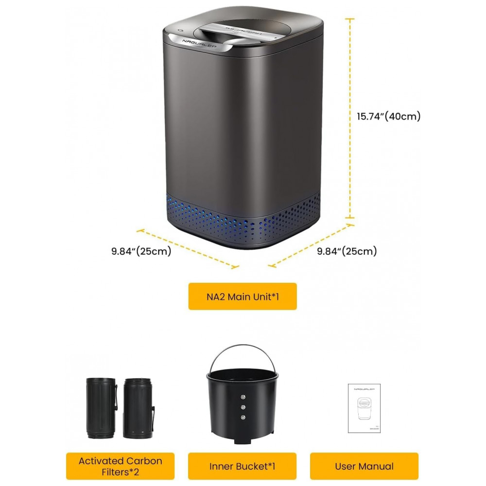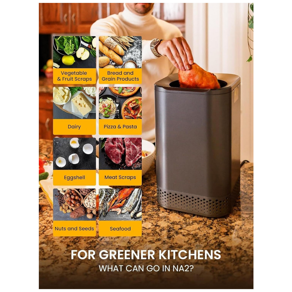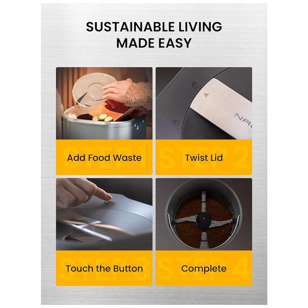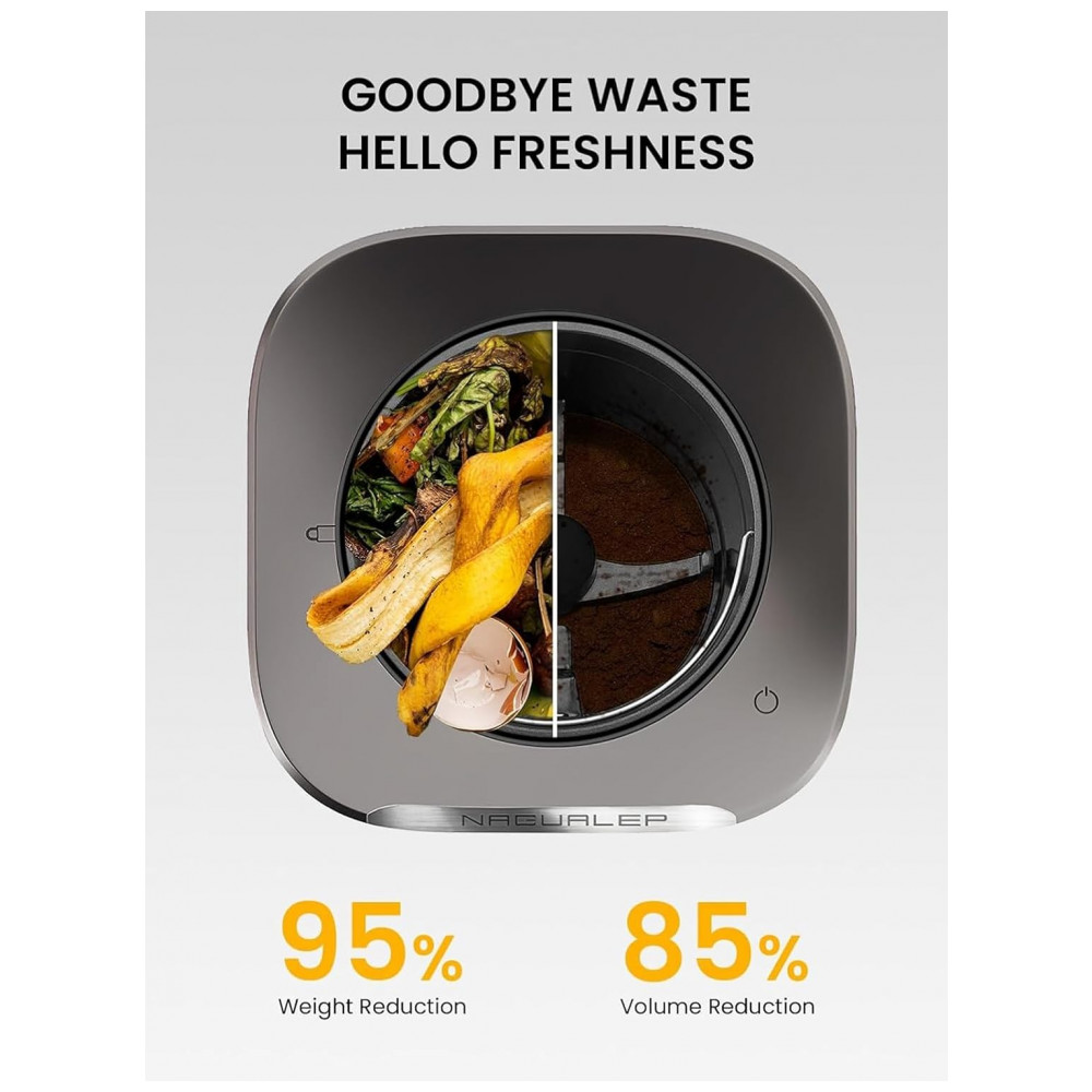 Composteira Elétrica de Cozinha 25L com Parada Automática Esterilização em Alta Temperatura e Desodorização por Filtro 110V NAGUAL Cinza Metálico
