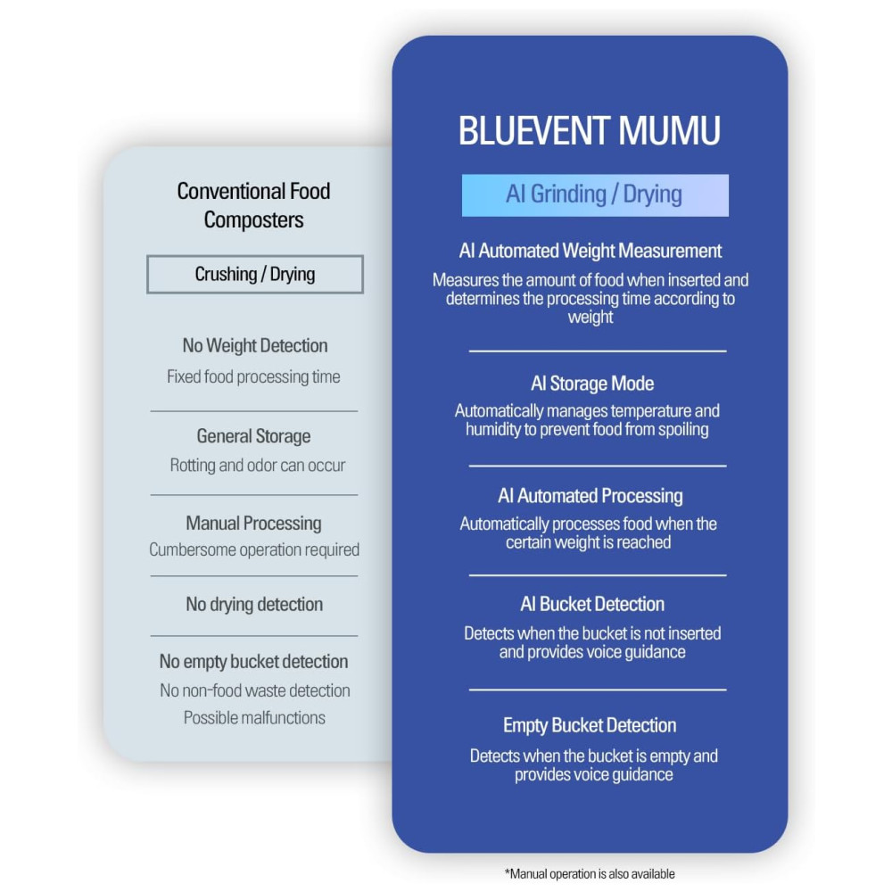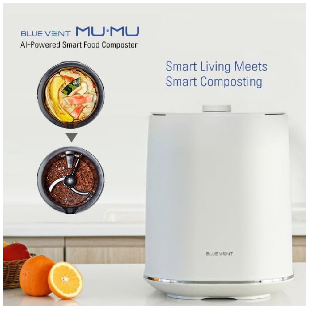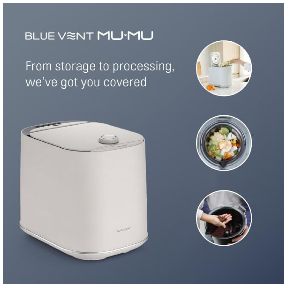 O modo verde processa os resíduos alimentares a uma temperatura mais baixa, o que reduz as emissões diárias de resíduos e resulta em um composto mais rico em nutrientes. A composteira é compatível com recargas de carvão THINKWARE BLUEVENT MUMU, vendidas separadamente, que substituem o carvão no filtro e eliminam odores durante o processamento.