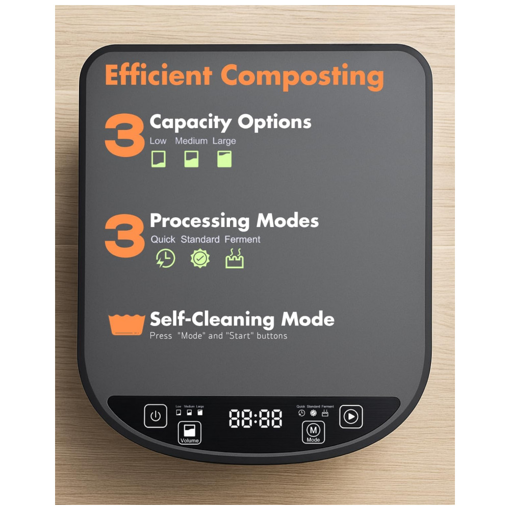 Composteira Elétrica de Cozinha aGratHav 4L Preto 3 Modos 3 Capacidades 120V