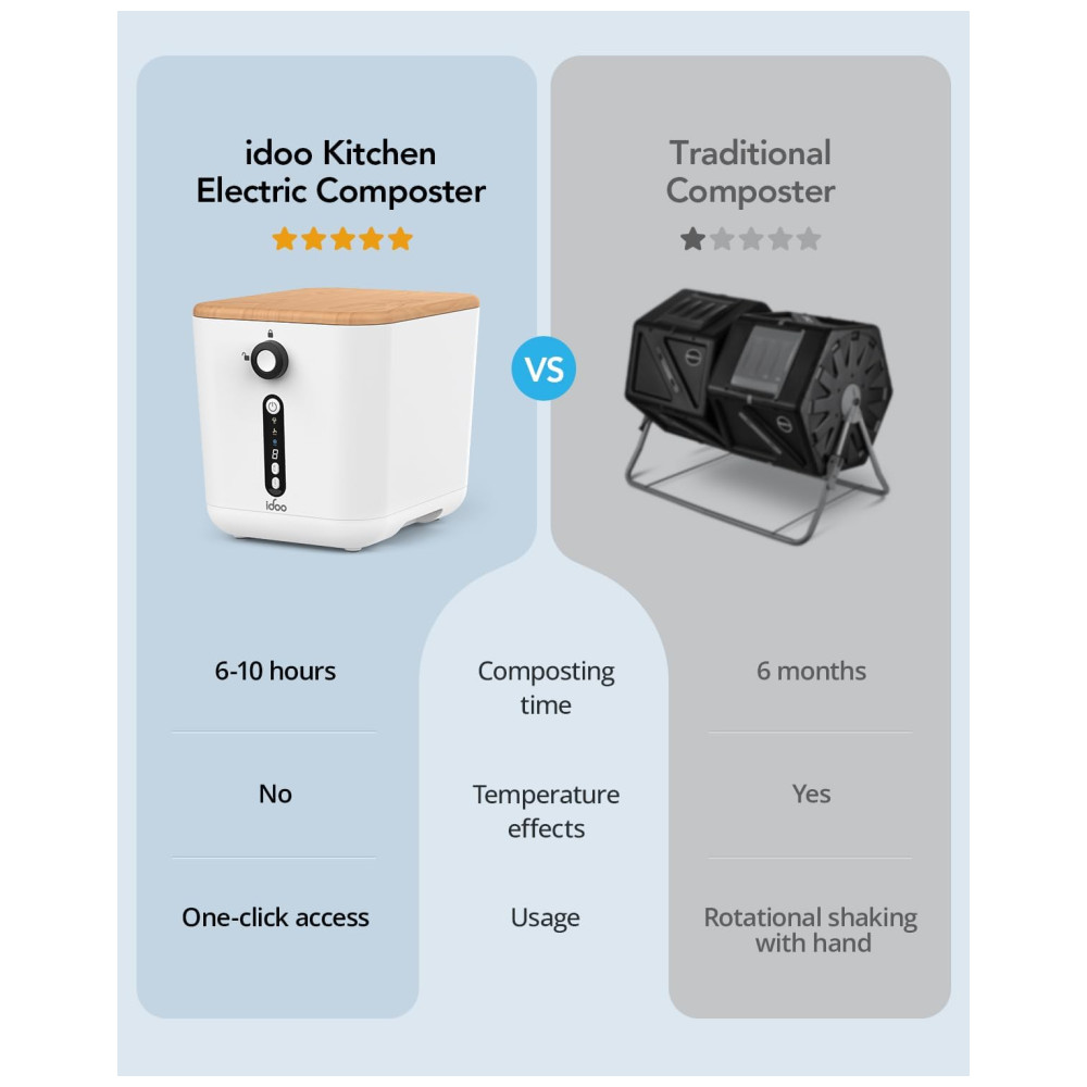 A Composteira Elétrica para Cozinha é um presente perfeito para mães, pais, amigos e qualquer pessoa que se preocupe com o meio ambiente. Com a iDOO, você não precisará mais pagar altas taxas de descarte de lixo, poderá evitar que suas sobras vão para o lixo, minimizar sua pegada de carbono e economizar com o descarte, ao mesmo tempo em que revitaliza seu jardim.