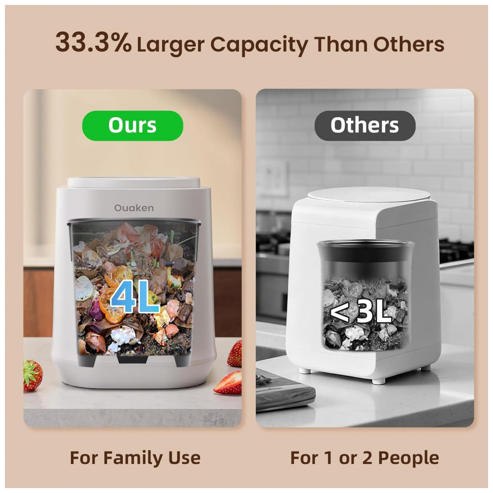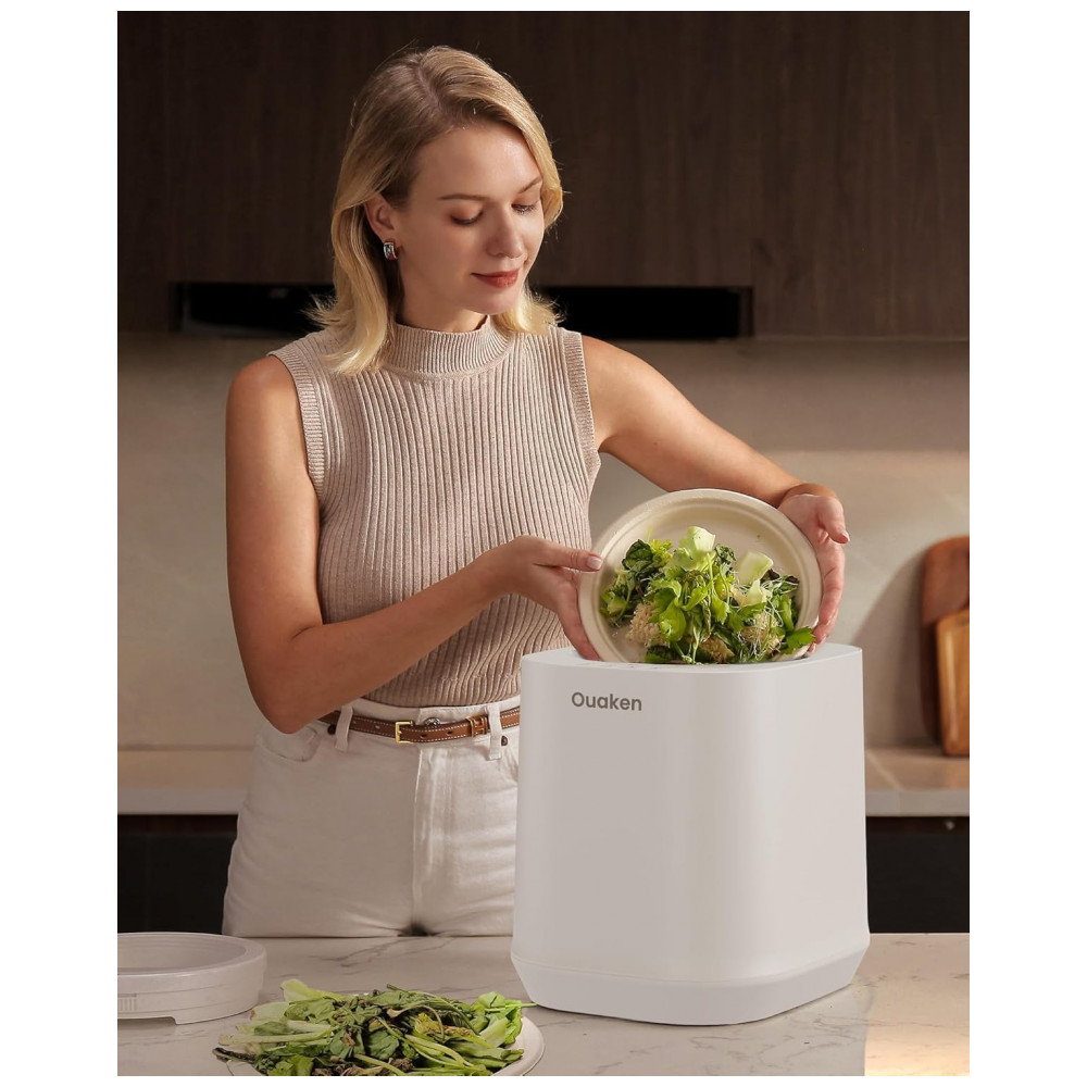 Composteira Elétrica de Cozinha Ouaken 4L Branco Smart Auto-Limpeza 120V
