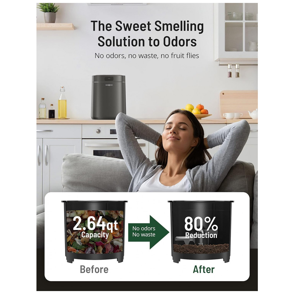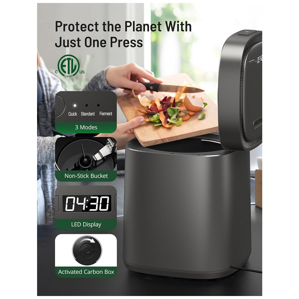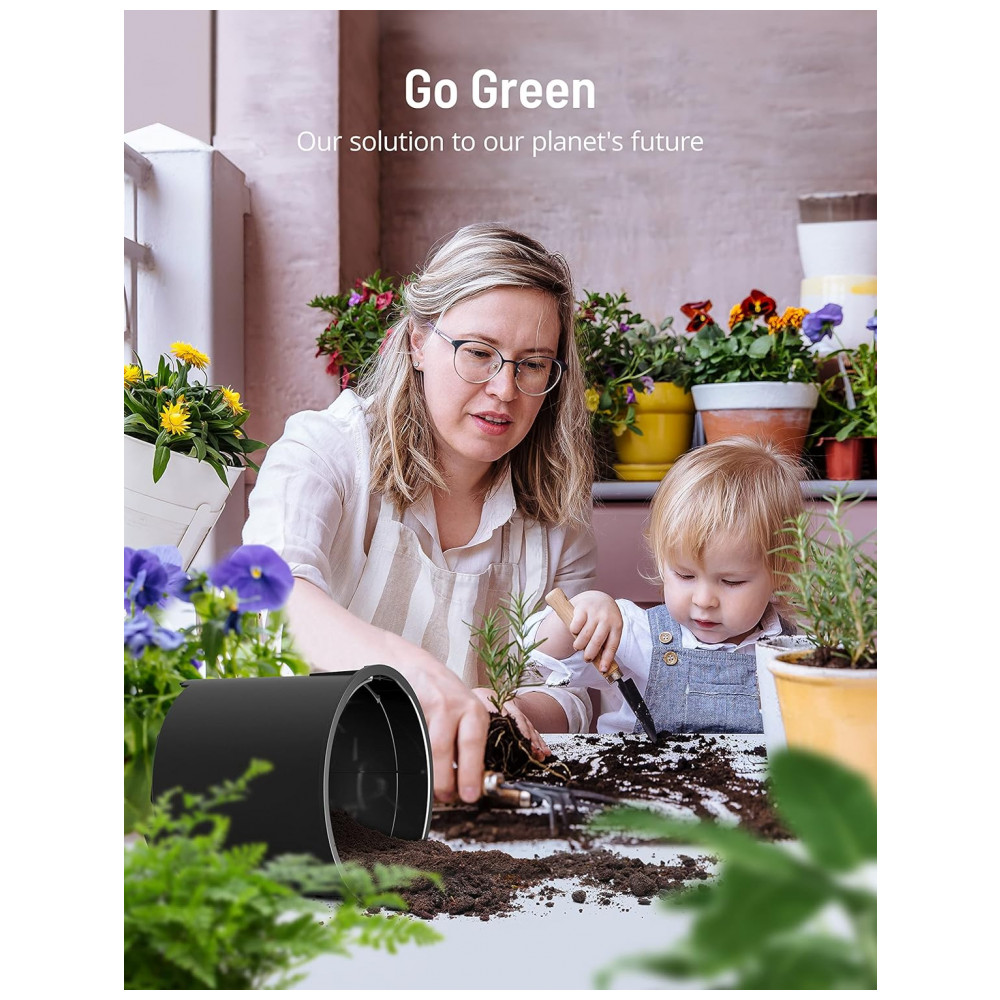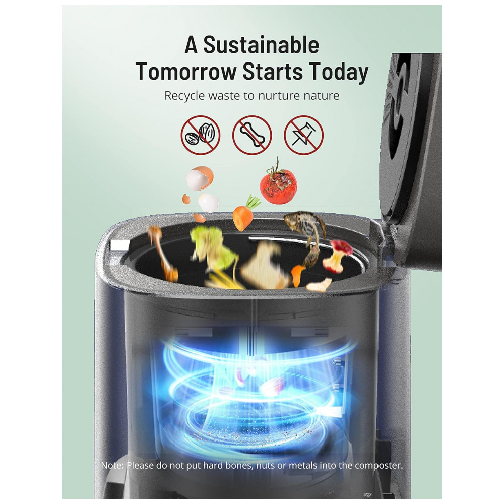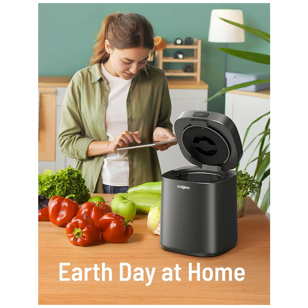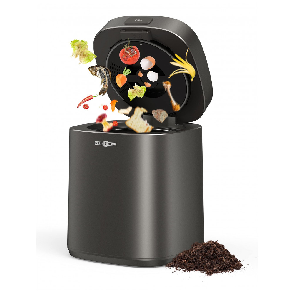 O compostor elétrico Paris Rhône Smart processa resíduos alimentares em pré-fertilizante por desidratação térmica e trituração em 3 modos operacionais, projetado para uso indoor em bancada de cozinha residencial. Inclui filtros de carbono ativado para controle de odores e sistema de ciclagem que reduz volume orgânico em ciclos de 4-8 horas. Compatível com rotinas domésticas sustentáveis, gera material utilizável em jardinagem.