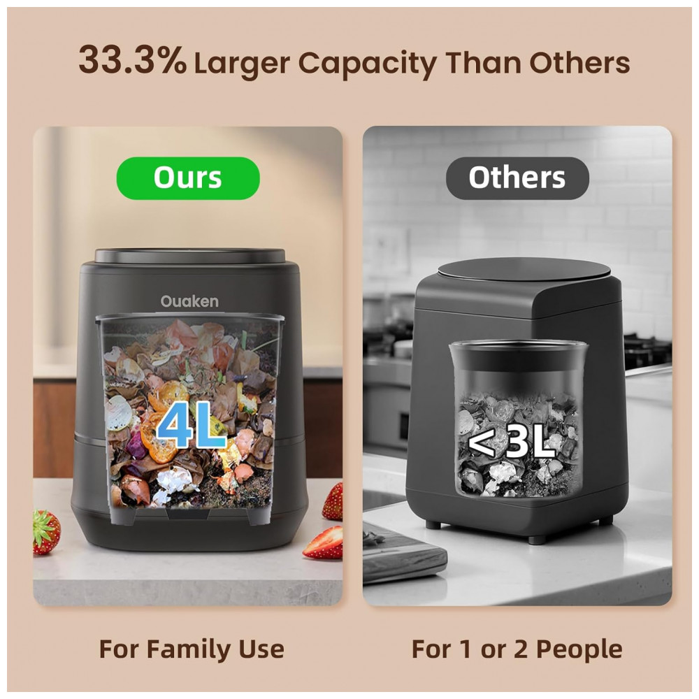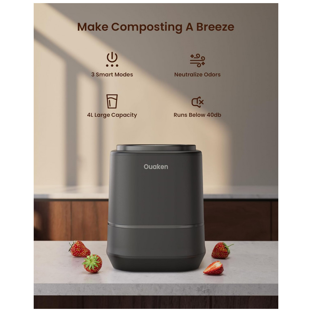 Composteira Elétrica Quaken de Cozinha 4L Smart Bancada Preto Auto-Limpeza 120V