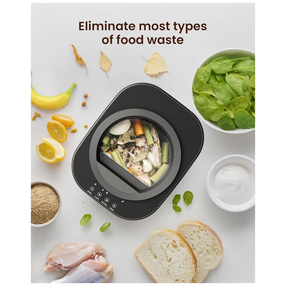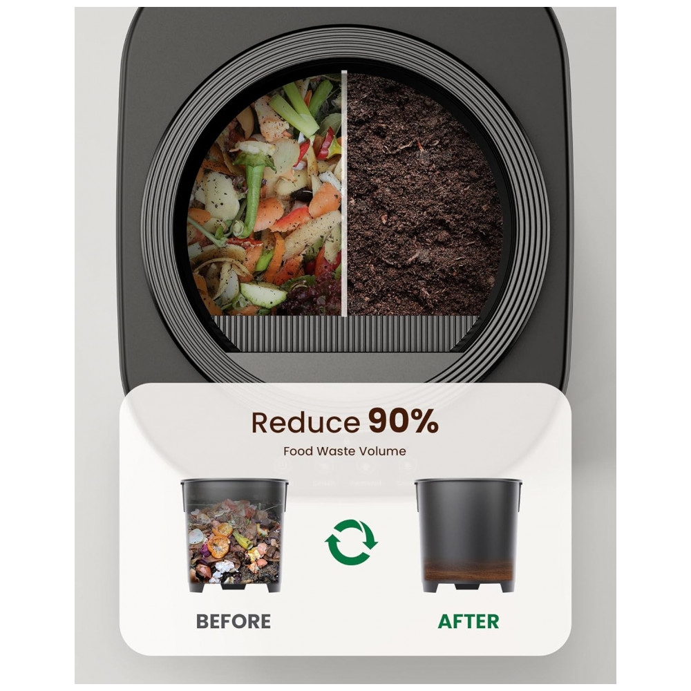 O compostor elétrico de cozinha de 4L processa resíduos alimentares em fertilizante seco por desidratação térmica acelerada e trituração automatizada, projetado para uso indoor em bancada residencial. Com operação silenciosa e sistema de autolimpeza, suporta até 1 kg por ciclo em 3-8 horas, produzindo material utilizável em jardinagem doméstica. Inclui vedação hermética e filtros de carbono para controle de odores durante processamento de sobras orgânicas comuns.