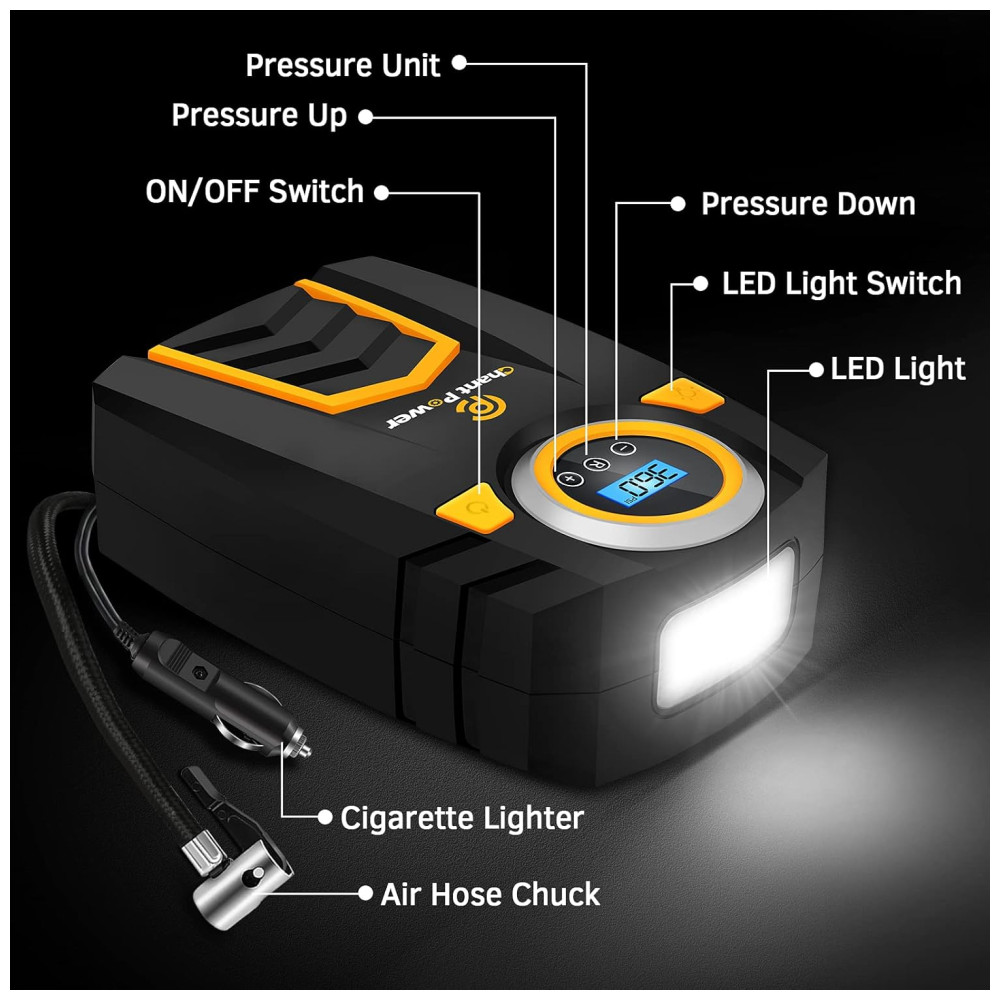 Compressor de Ar com Bateria Recarregável 20V 12V 150PSI C P CHANTPOWER CPACP600 Preto