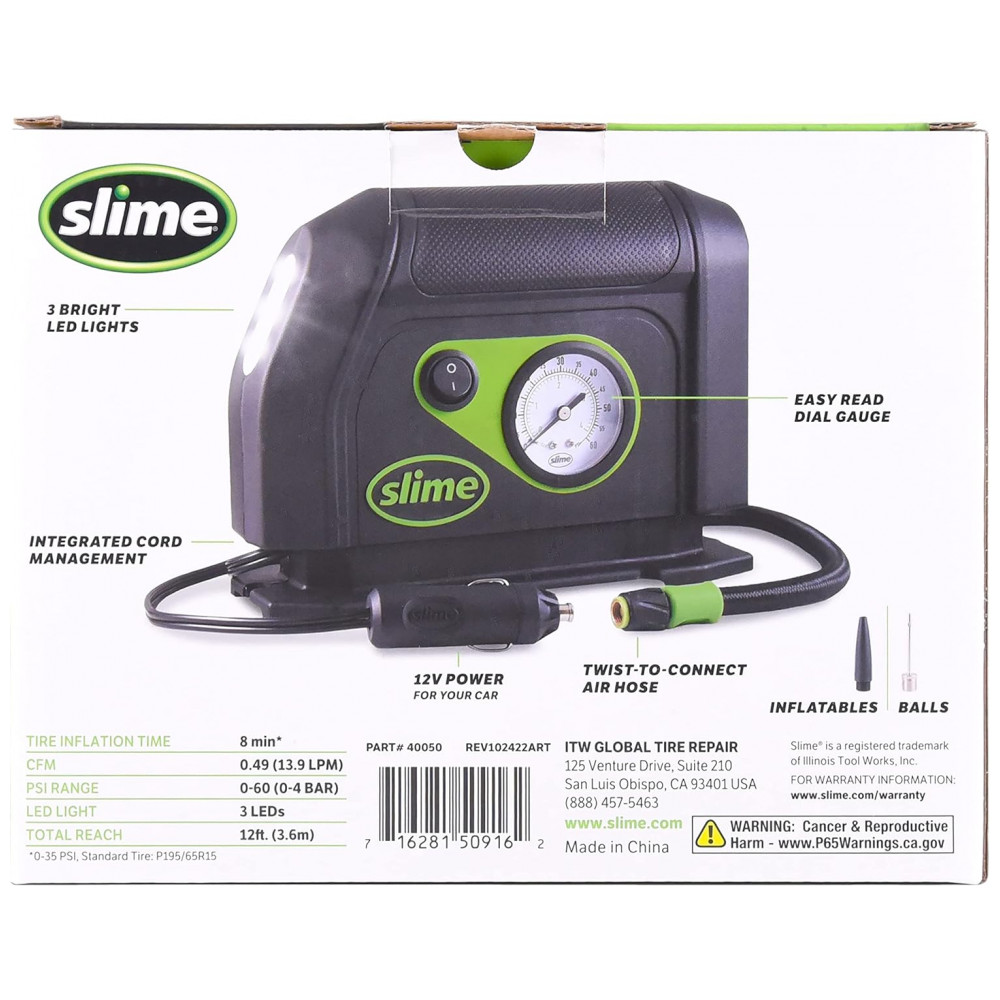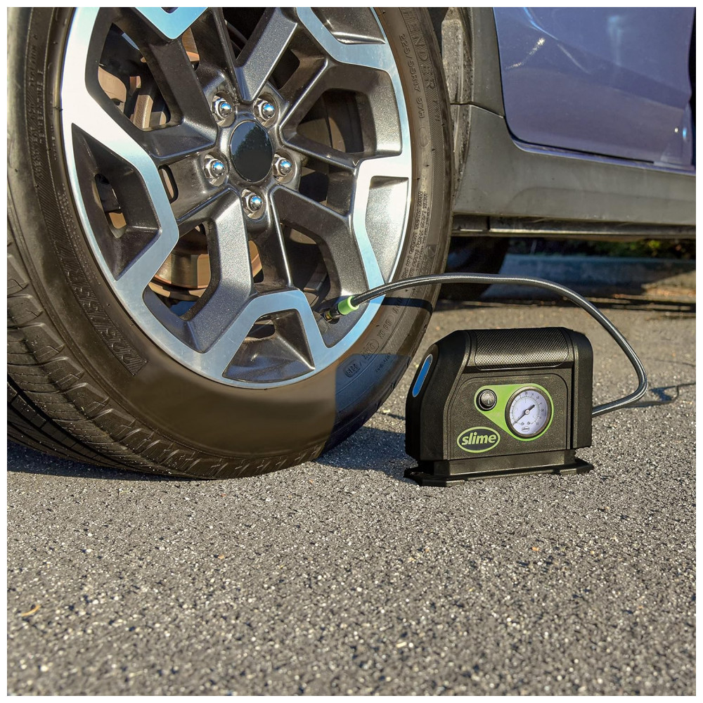 Compressor de Ar com Fio Portátil 100 PSI com Medidor Analógico e Luz LED 12V Slime 40050 Preto