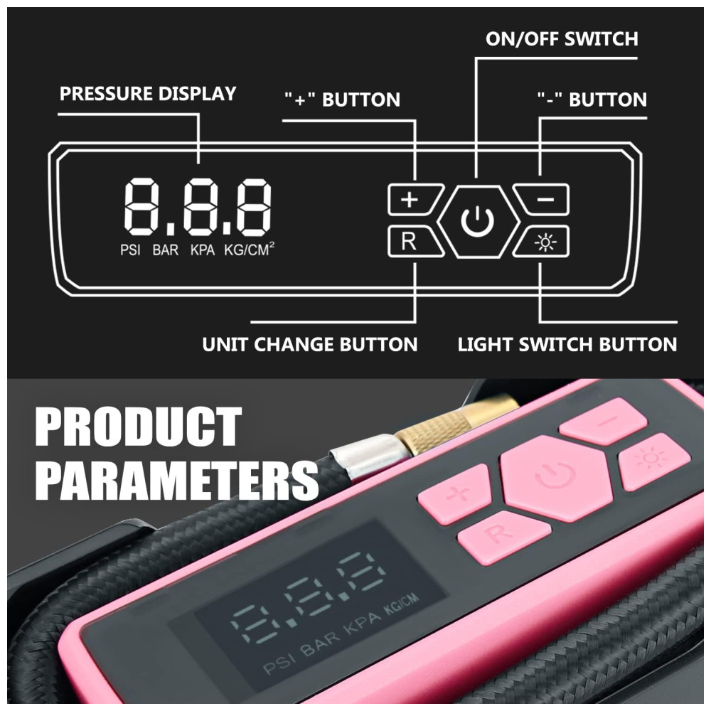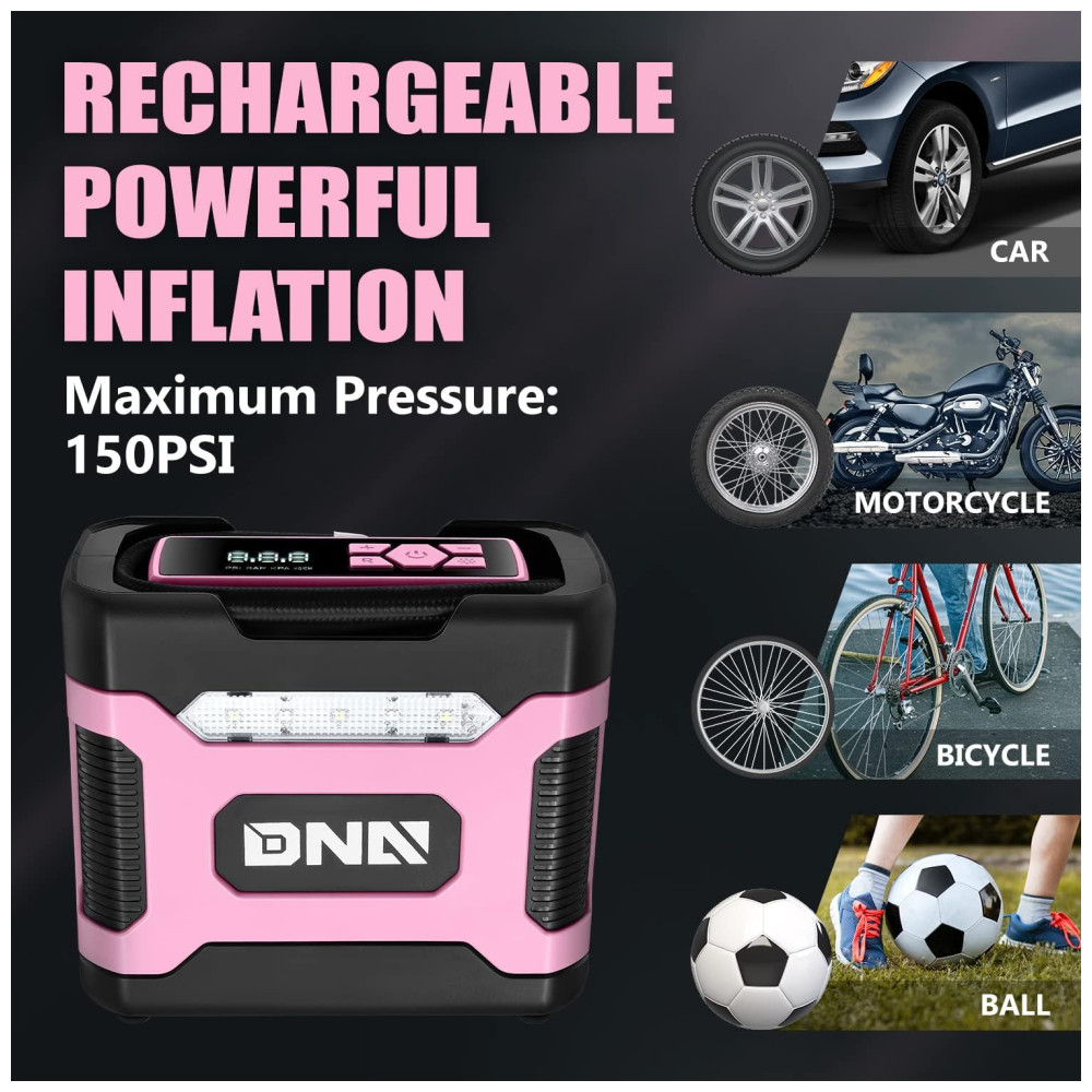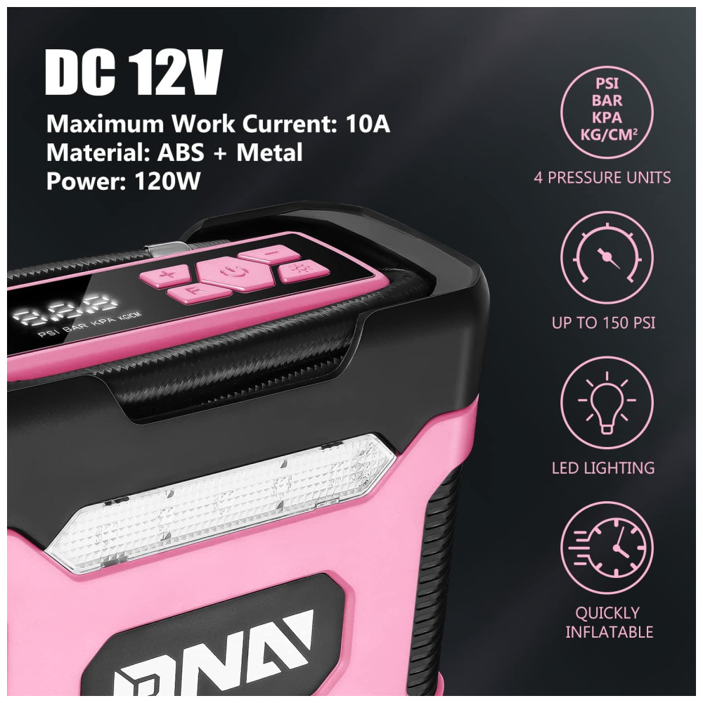 Compressor de Ar com Fio Portátil 150 PSI com Manômetro 12V DNA MOTORING TOOLS00212 Rosa