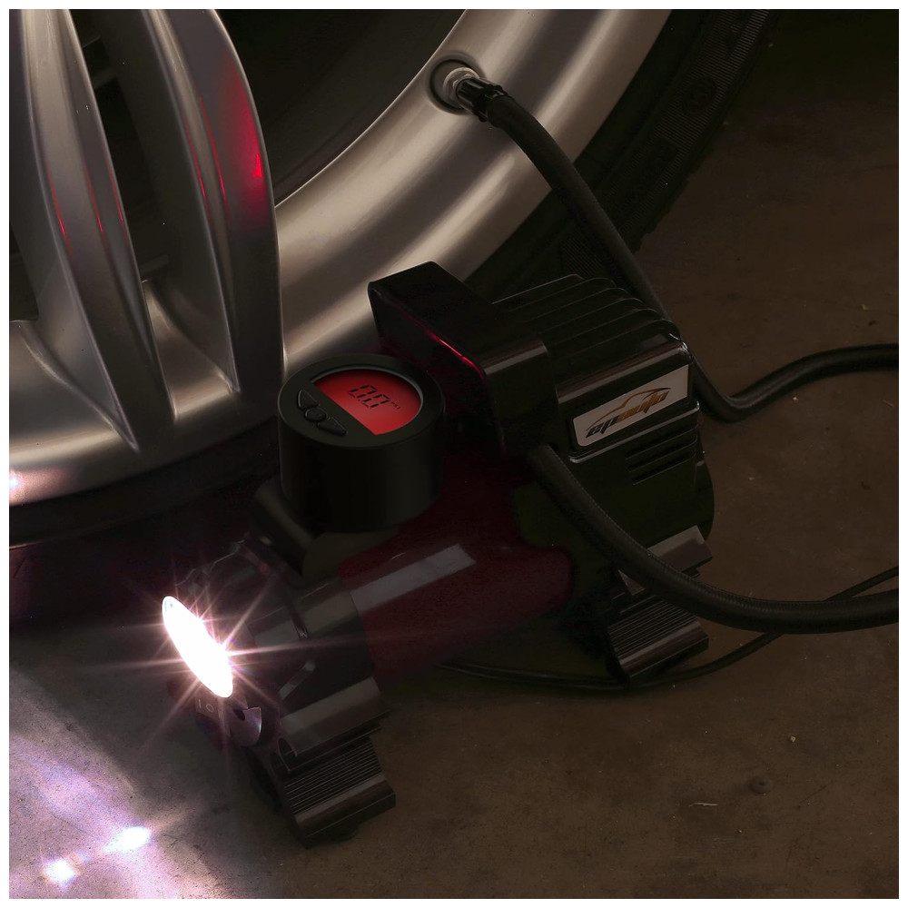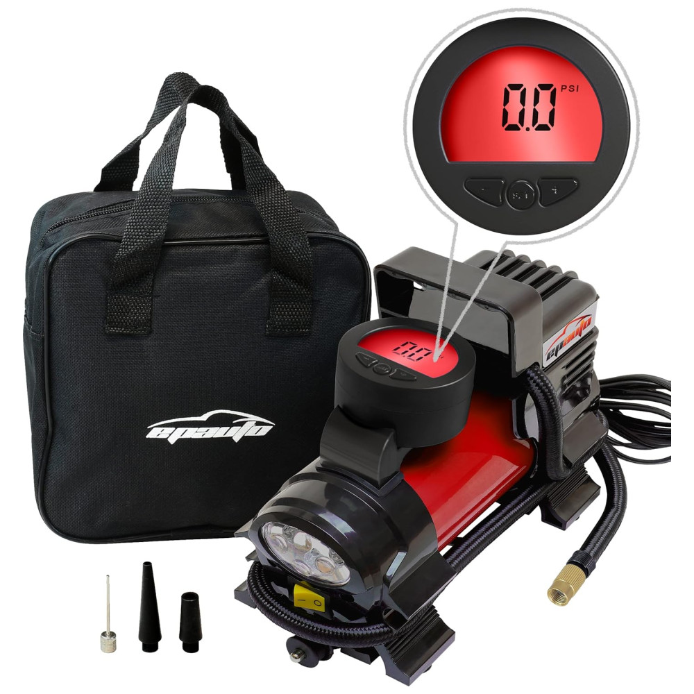 Vários usos Encha pneus em carros, bicicletas, sedan e SUV de médio porte. Tamanho do motor abaixo de 3,5 litros O conector de válvula universal para válvula Schrader está pronto para uso. Adaptadores adicionais incluem valor de agulhas para basquete, bolas, adaptadores de cone curto , cone longo para caiaque inflável, acessórios de piscina, etc
