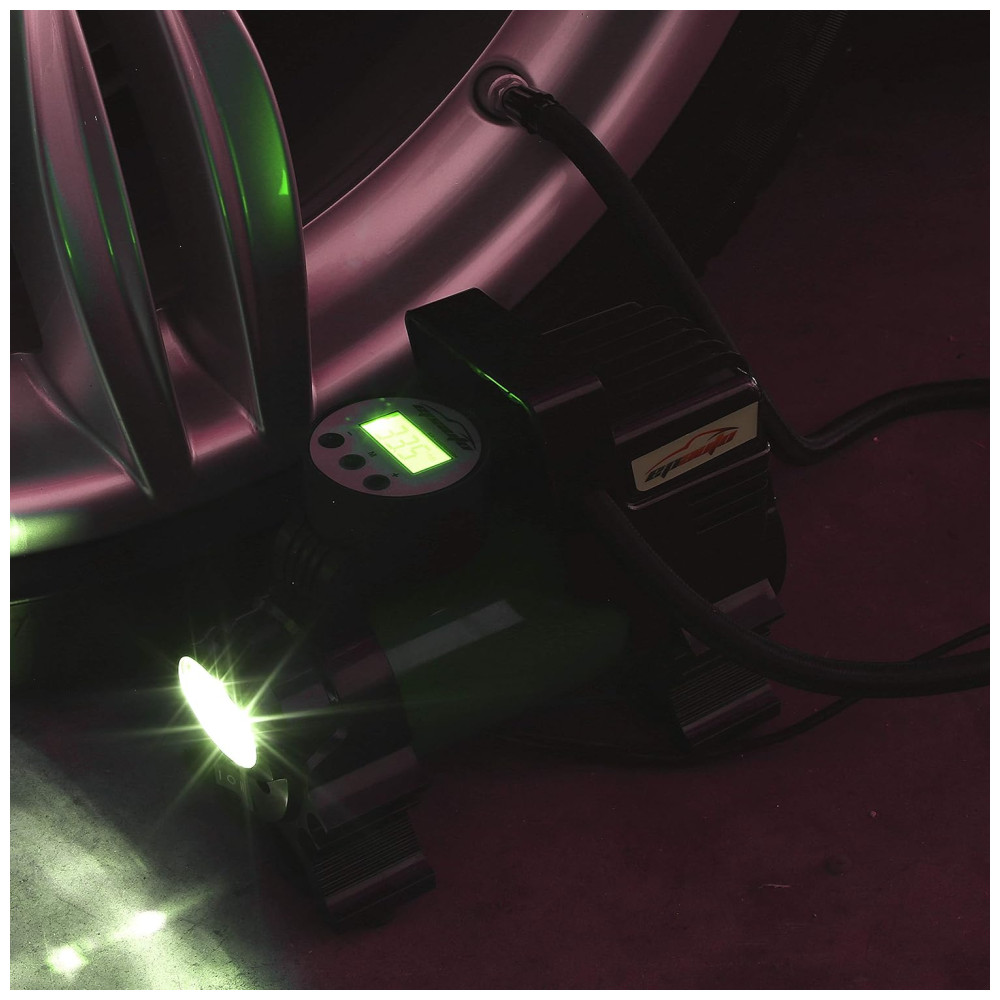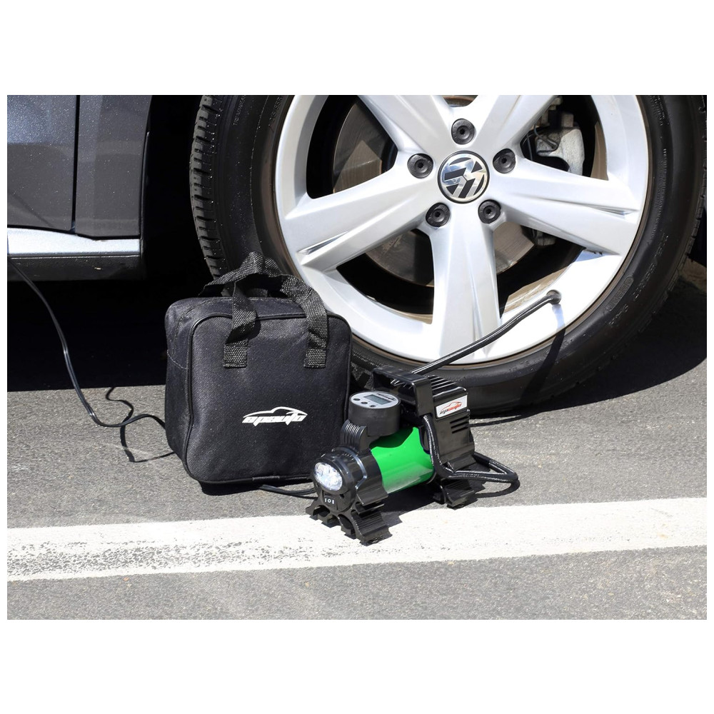 Vários usos Encha pneus em carros, bicicletas, sedan e SUV de médio porte. Tamanho do motor abaixo de 3,5 litros O conector de válvula universal para válvula Schrader está pronto para uso. Adaptadores adicionais incluem valor de agulhas para basquete, bolas, adaptadores de cone curto , cone longo para caiaque inflável, acessórios de piscina, etc