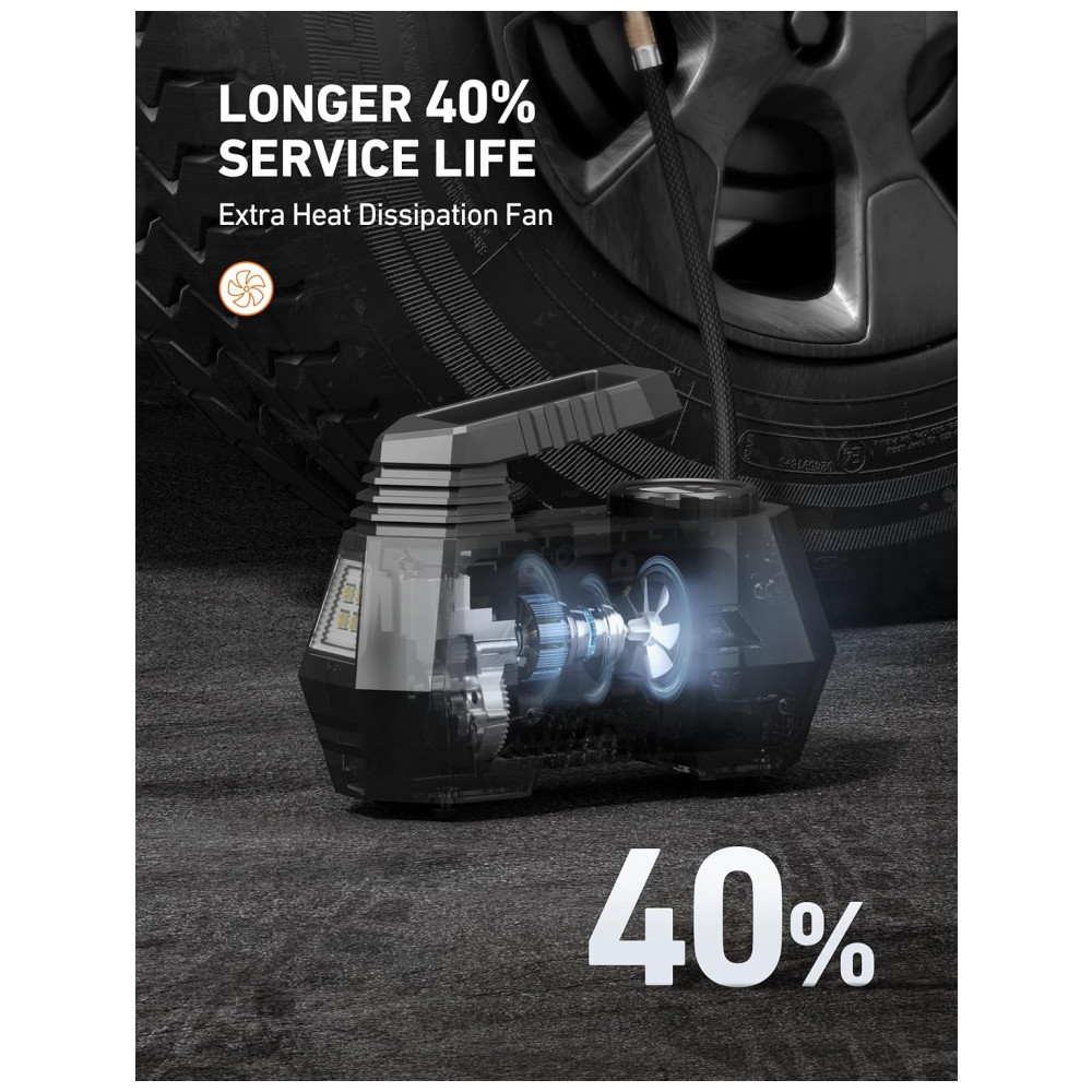 INFLAÇÃO RÁPIDA E PRECISÃO AVANÇADA Materiais de alta qualidade foram adquiridos para este inflador de pneus, pois pode encher os pneus do seu carro com 35 L, Min, pode inflar o pneu de carro 195, 55, R15 de 0 a 35psi em 5 minutos. Calibrado profissionalmente para sempre retornar uma leitura dentro de 1,5 da pressão do seu pneu. OBSERVE que, após 10 a 15 minutos de uso contínuo, deixe o compressor de ar descansar e esfriar por igual período de tempo, no mínimo, antes de continuar o uso.