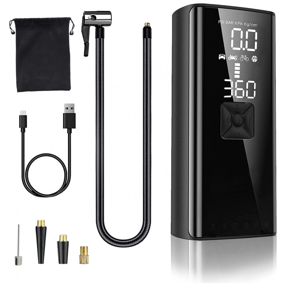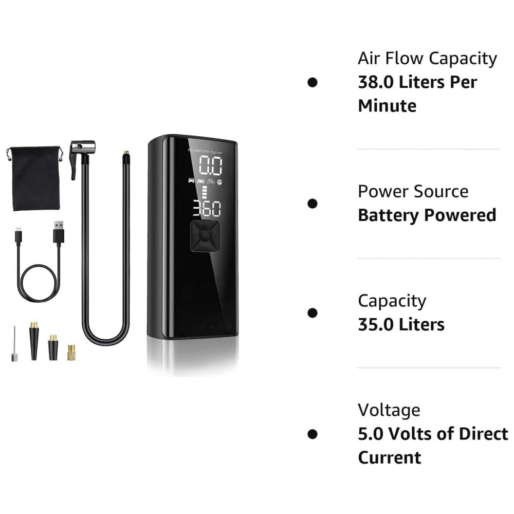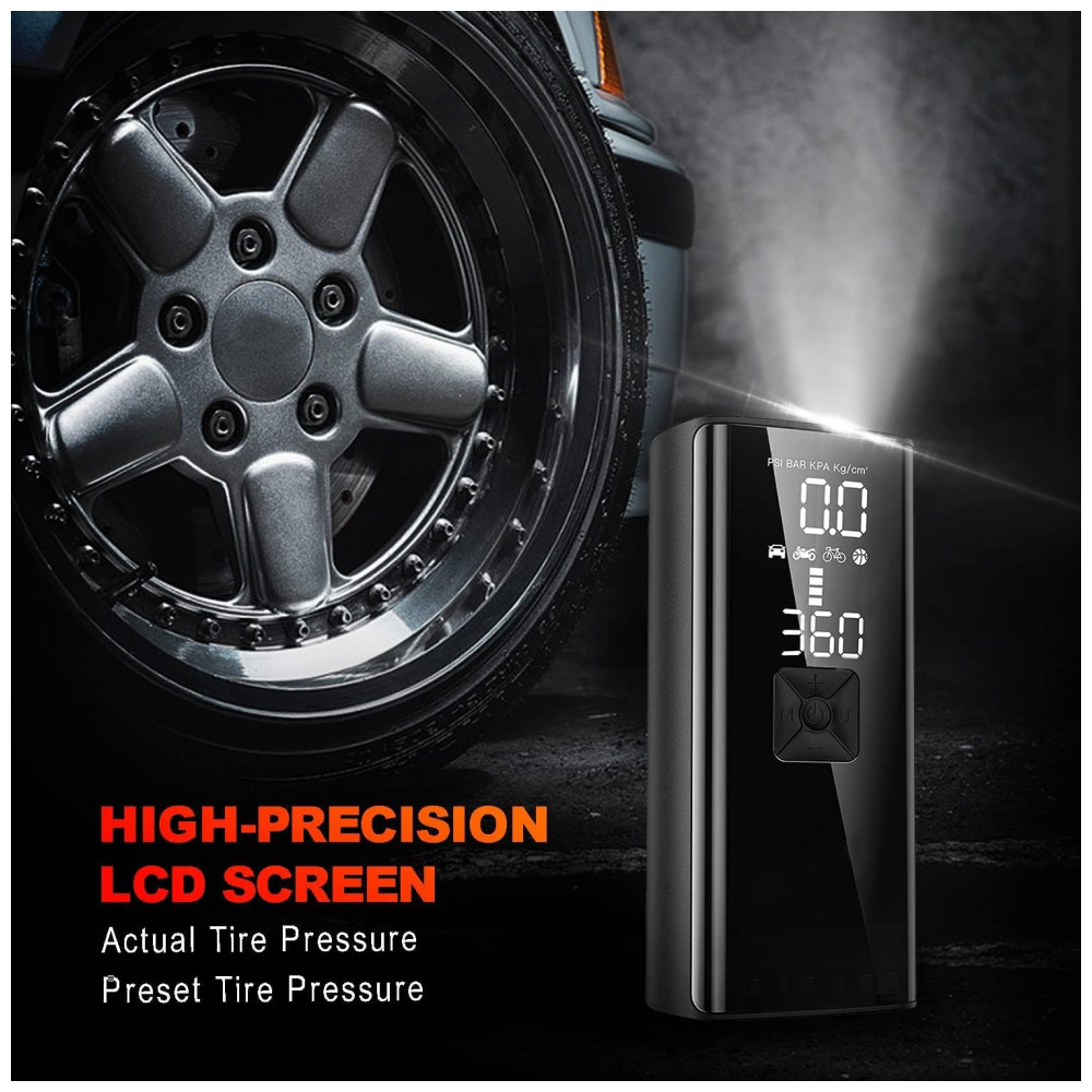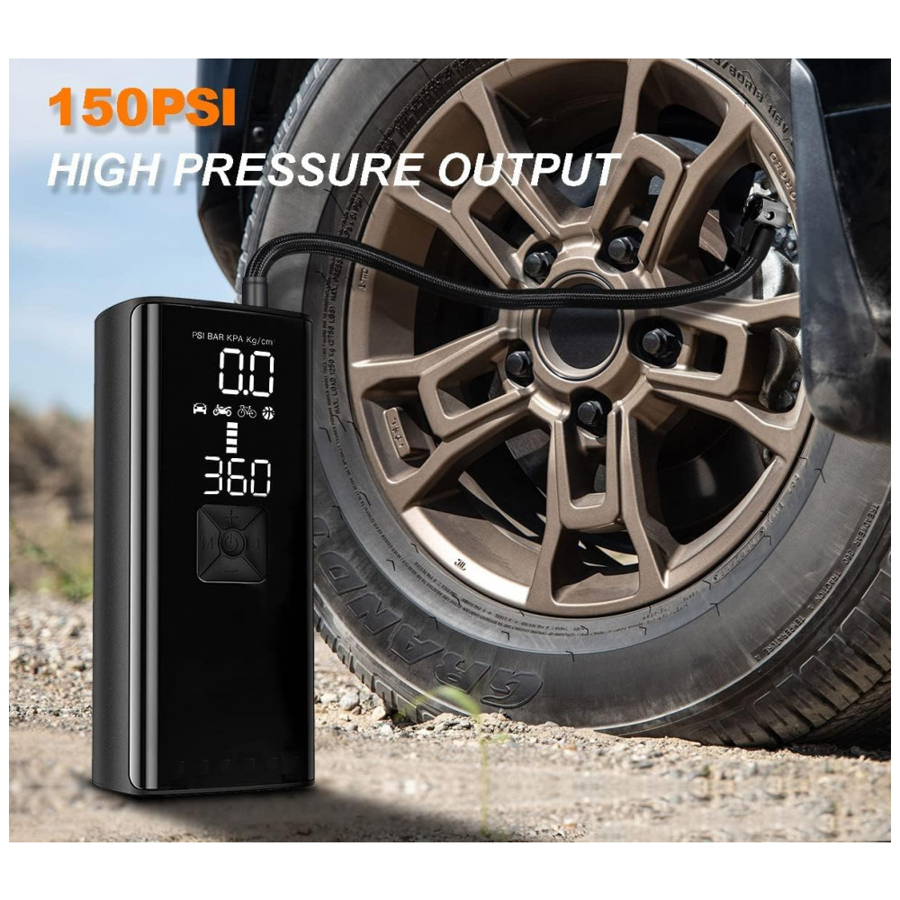Compressor de Ar Portátil 150 PSI Recarregável com Luzes de Emergência e Inflação 2X Mais Rápida 12V KIMHI Preto