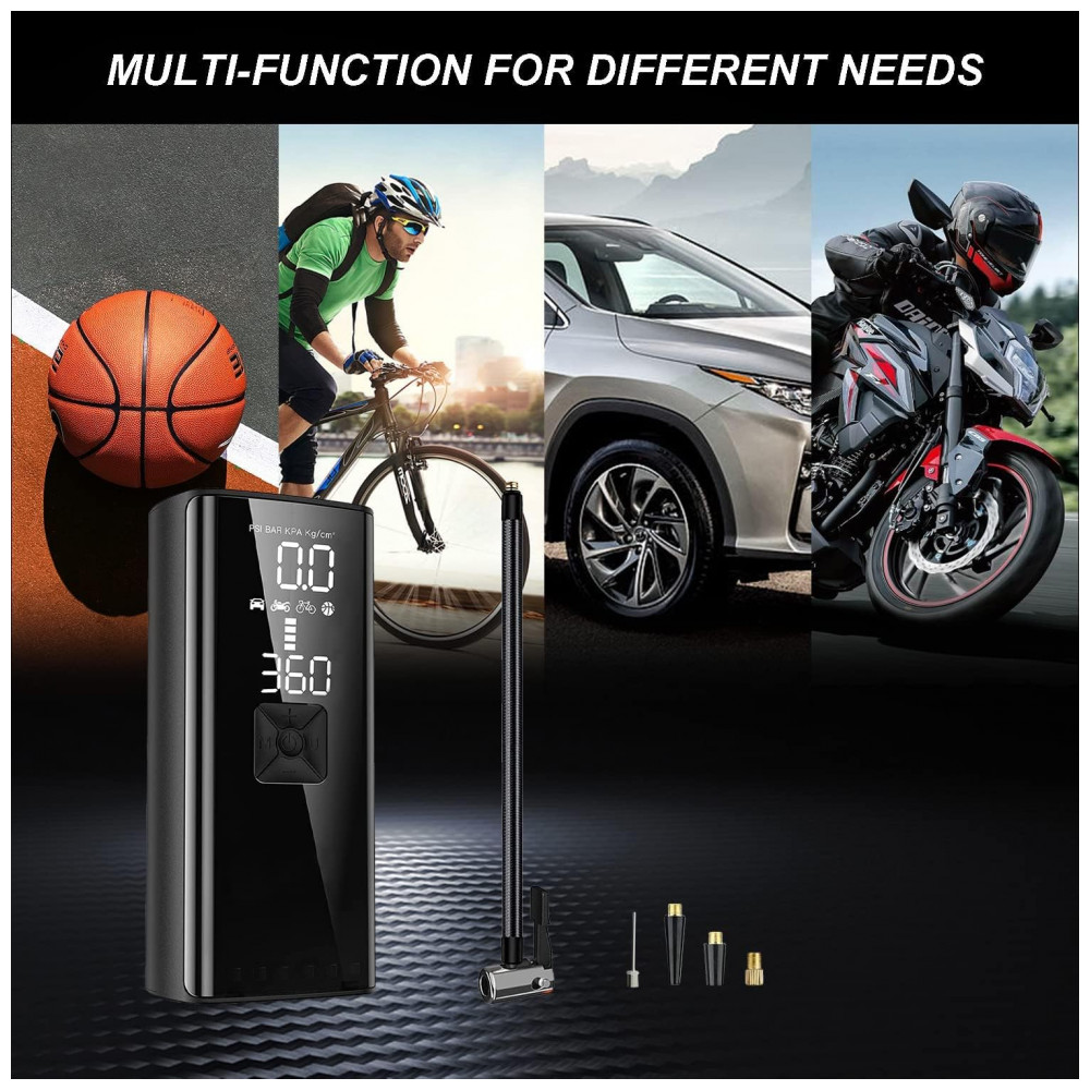 Modo de inflação inteligente4 tipos de modos de inflação predefinidos bicicletas, motocicletas, carros e bolas e 4 unidades de medição de pressão PSI, KPA, BAR, KG, CM. Operação simples, seleção de um toque de acordo com suas necessidades de inflação.