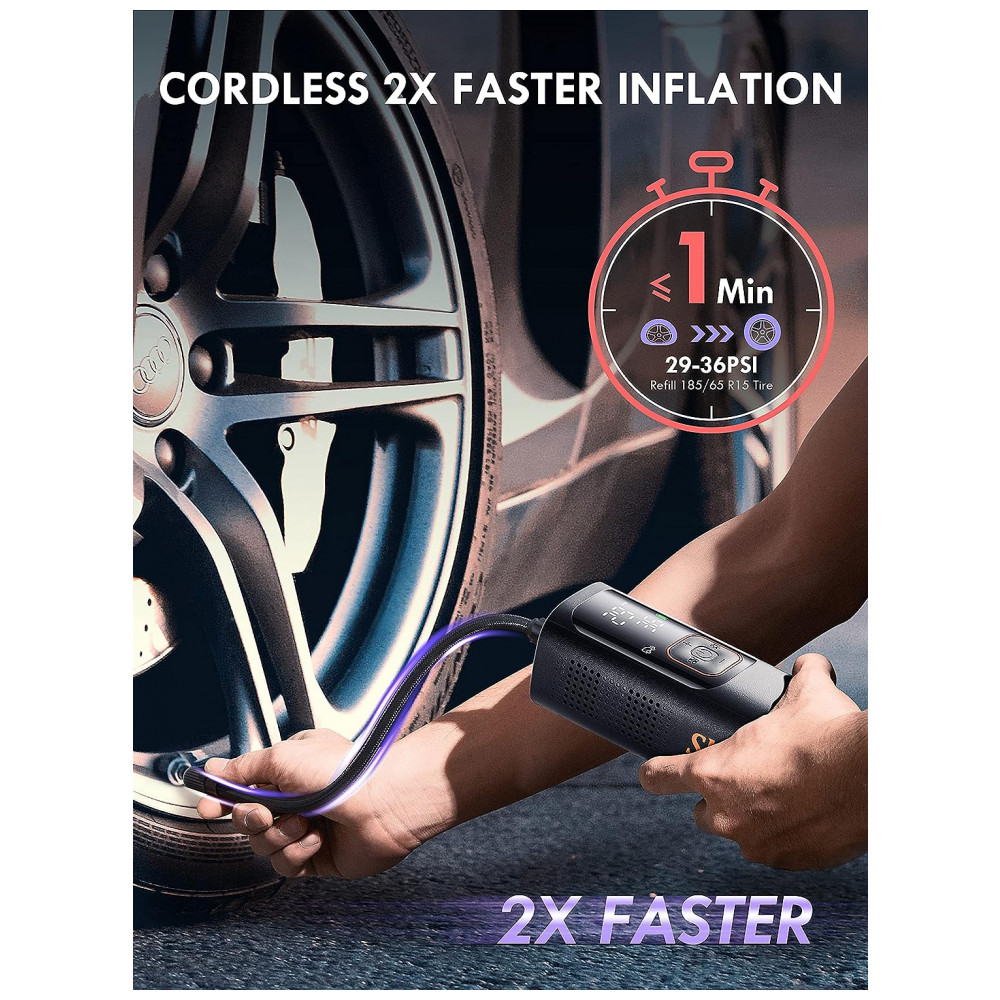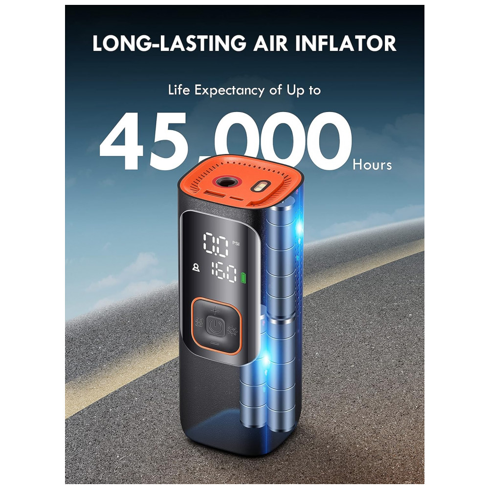 Poderoso inflador de pneus de 160 PSI e 2X mais rápido, mas leve e portátila bomba infladora de ar equipada com chip de alto desempenho e motor potente, o inflador de pneus Skight oferece fluxo de ar de 32L, Min de inflação de 160PSI, 2X mais rápido que outros. Leva apenas 6 minutos para encher totalmente um pneu de carro 205, 55 R16 0 36PSI, 1 minuto para reabastecer de 29 36PSI. Além disso, o design de bolso garante a portabilidade na vida diária.