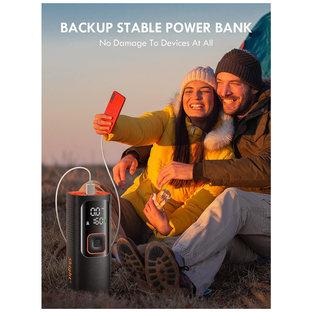 Compressor de Ar Portátil 160 PSI Recarregável 2X Mais Rápido e Display LCD 12V Skight Laranja