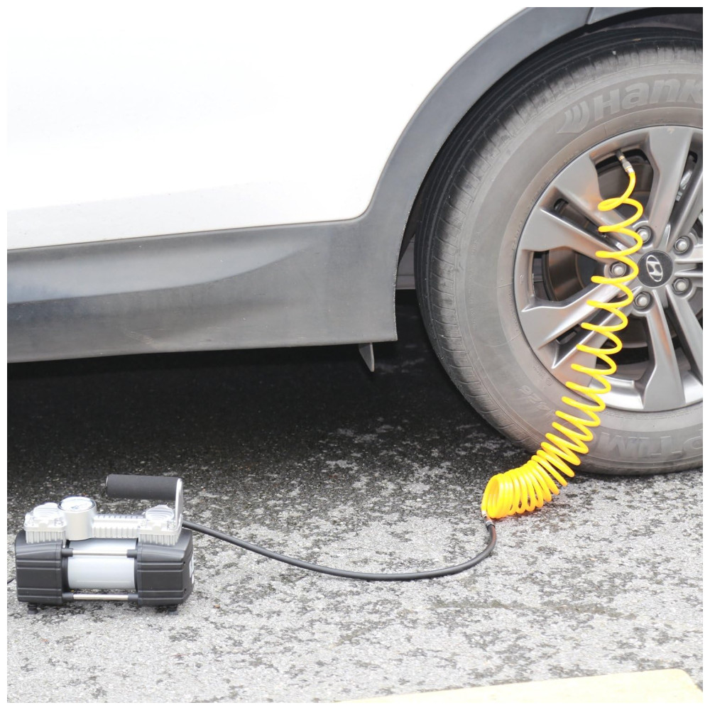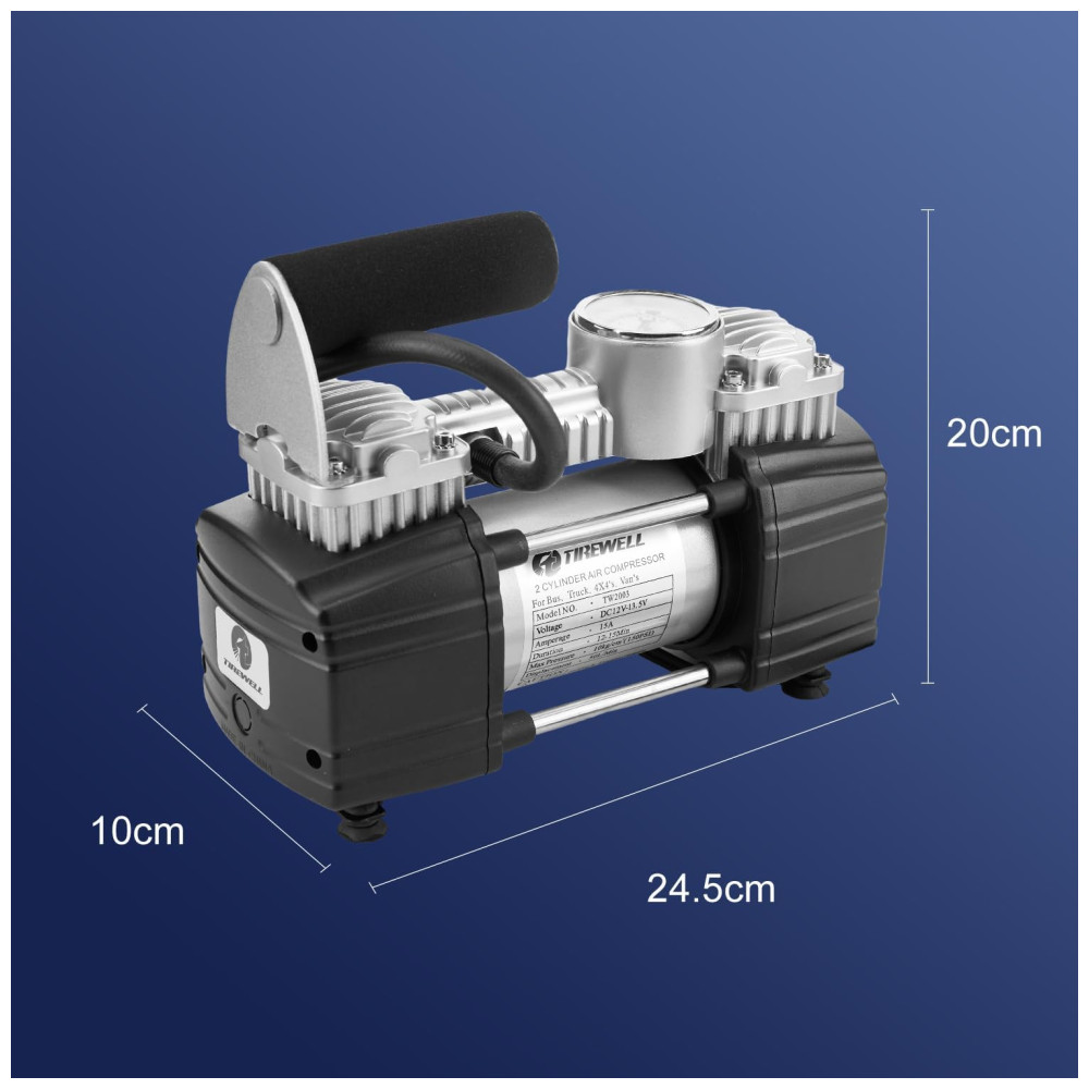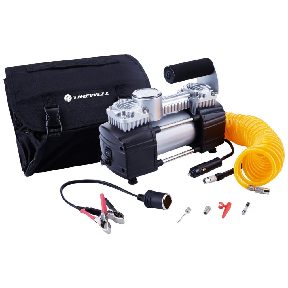 Compressor de Ar Portátil Cilindros Duplos 150PSI 12V Extensão de 5M SUVs Caminhões Vans RVs TIREWELL 4333087867 Prateado