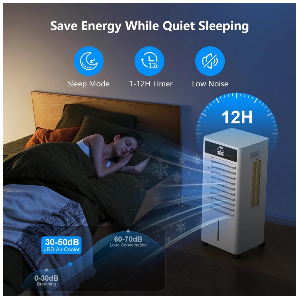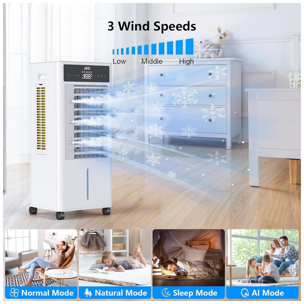 Condicionador de Ar Portátil JRD com 4 Gelos Packs Temporizador de 12H Tanque Duplo de Preenchimento Superior Resfriador de Ar por Evaporação