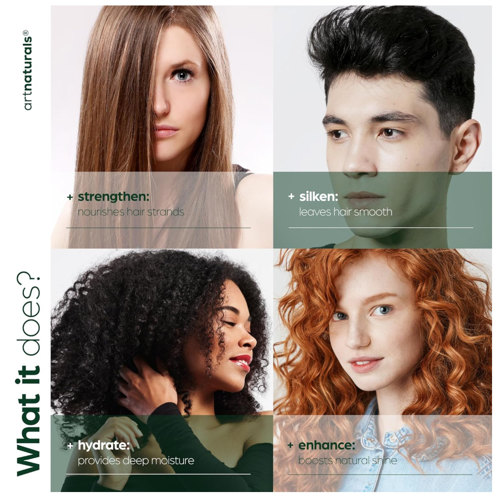 O Condicionador Artnaturals Tea Tree contém óleo essencial de melaleuca 100% puro, proporcionando higienização profunda dos fios e couro cabeludo. Livre de sulfatos e parabenos, possui fórmula enriquecida com óleos de borragem, hortelã-bálsamo e eucalipto, que auxiliam na remoção de resíduos e na manutenção da limpeza para cabelos secos. Com textura em gel, facilita o desembaraço, deixa os fios alinhados, brilho intenso e fragrância refrescante. Indicado para uso diário em cabelos masculinos e femininos, especialmente em casos de couro cabeludo sensível, promovendo maciez e condicionamento sem agredir a estrutura capilar. Não testado em animais.