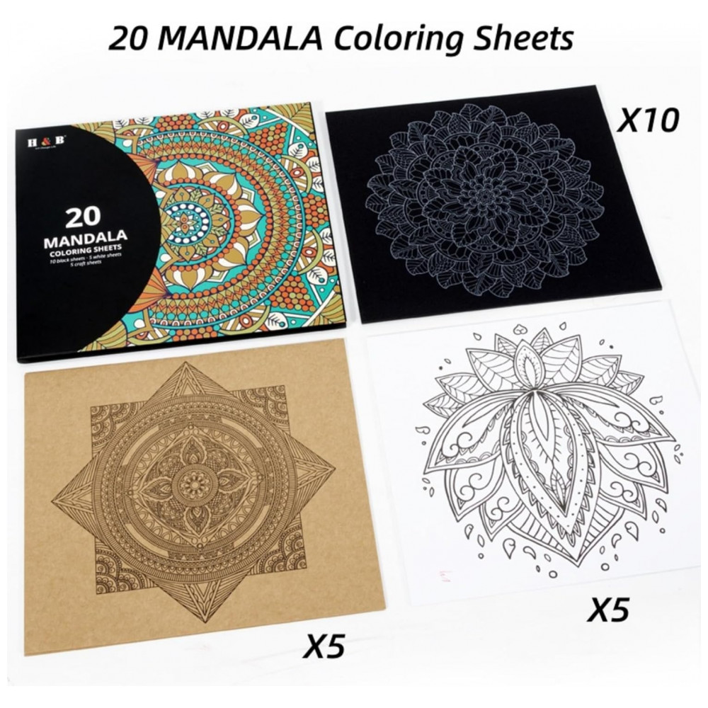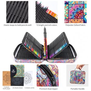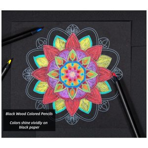 Este conjunto H & B Black Wood reúne 120 lápis de cor com corpo em madeira preta e minas macias à base de óleo, acompanhado de livro para colorir com papel preto, borracha, apontador e estojo com estampa mandala. As minas oferecem aplicação suave, pigmentação rica e boa resistência à luz, adequadas para camadas, mesclas e detalhes em papéis claros e escuros.